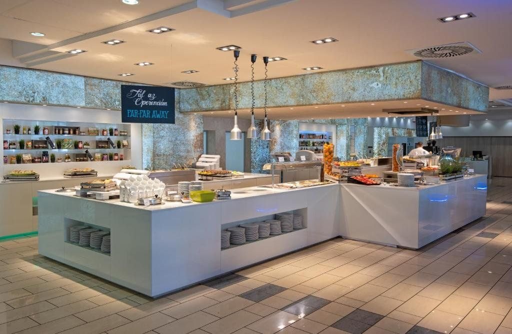 Formou polopenze. Bufetová snídaně a večeře.Kromě sezonních specialit je zde i tradiční maďarská a mezinárodní kuchyně.