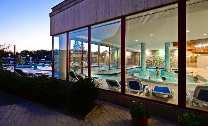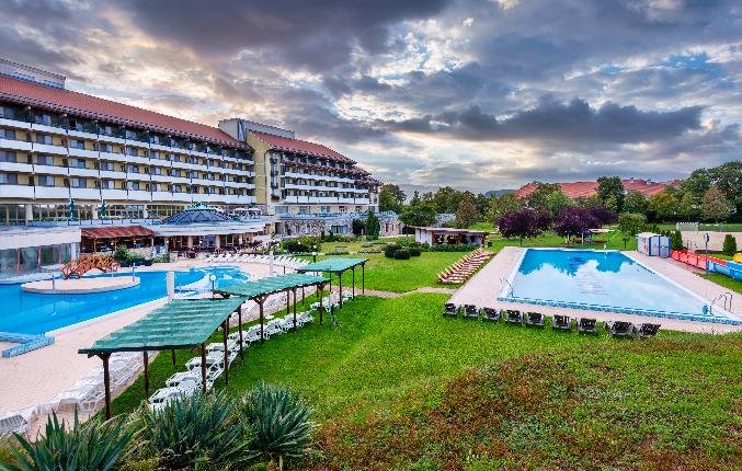 Hotel je situován poblíž centra města, uprostřed parku, přímo nad krasovou jeskyní, jejíž speciální mikroklima vykazuje léčivé účinky. Pouhých 12km od Balatonu.