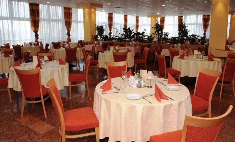 Restaurace s mezinárodní kuchyní, nabídka diabetických a vegetariánských pokrmů, kavárna, bar, sauna, parkoviště pro hosty (za poplatek). Lobby bar s TV, dětský koutek, kulečník za poplatek, pedikúra, manikúra, kosmetika, kadeřník, masáře (za poplatek). V ceně přímý vstup do termálních lázní Gránit spojovací chodbou, včetně zážitkového bazénu a saun, tobogán. Specielní sauna i pro děti.V létě je v areálu lázní bazén s normální vodou.