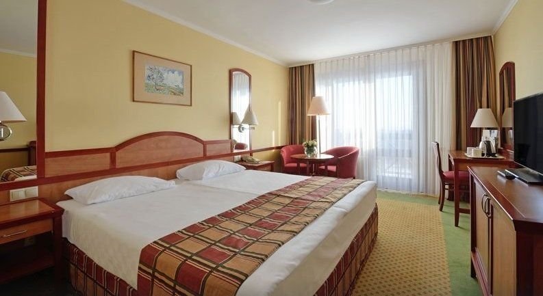 Dítě do 5 let zdarma.Komfortní lázeňský hotel disponuje 200 pokoji rozmístěnými v moderní vícepatrové budově obklopené rozlehlou zahradou se vzrostlými stromy. K dispozici je vstupní hala s recepcí, směnárnou, trezory a lobby barem, restaurace, ordinace lékařů, internetový koutek (za poplatek), WiFi, kadeřnický a kosmetický salón, manikůra, pedikůra, obchod se suvenýry, velký venkovní bazén, opalovací terasa (lehátka a slunečníky za poplatek), půjčovna kol, SPA centrum a parkoviště.Možný pobyt se psem (za poplatek). Všechny pokoje jsou nekuřácké.