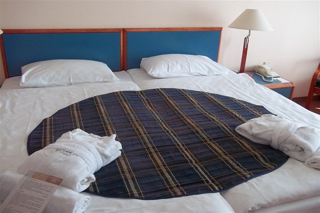 Moderně zařízené, prostorné dvoulůžkové pokoje s možností přistýlky jsou vybaveny sociálním zařízením (sprcha, toaleta, fén, župany, pantofle), telefonem, klimatizací/topením, TV/sat., minibarem a balkonem. Hotel má několik pokojů přizpůsobených handicapovaným klientům (na vyžádání). Dětská postýlka a vysoká jídelní židlička je k dispozici na vyžádání zdarma.