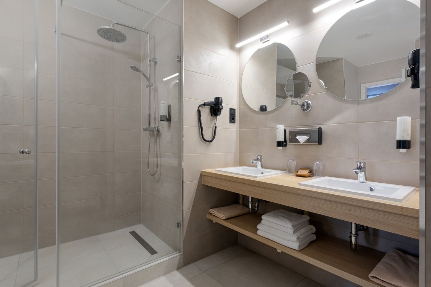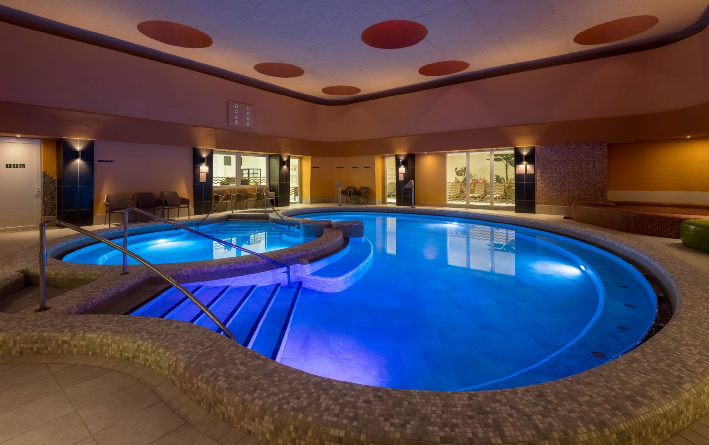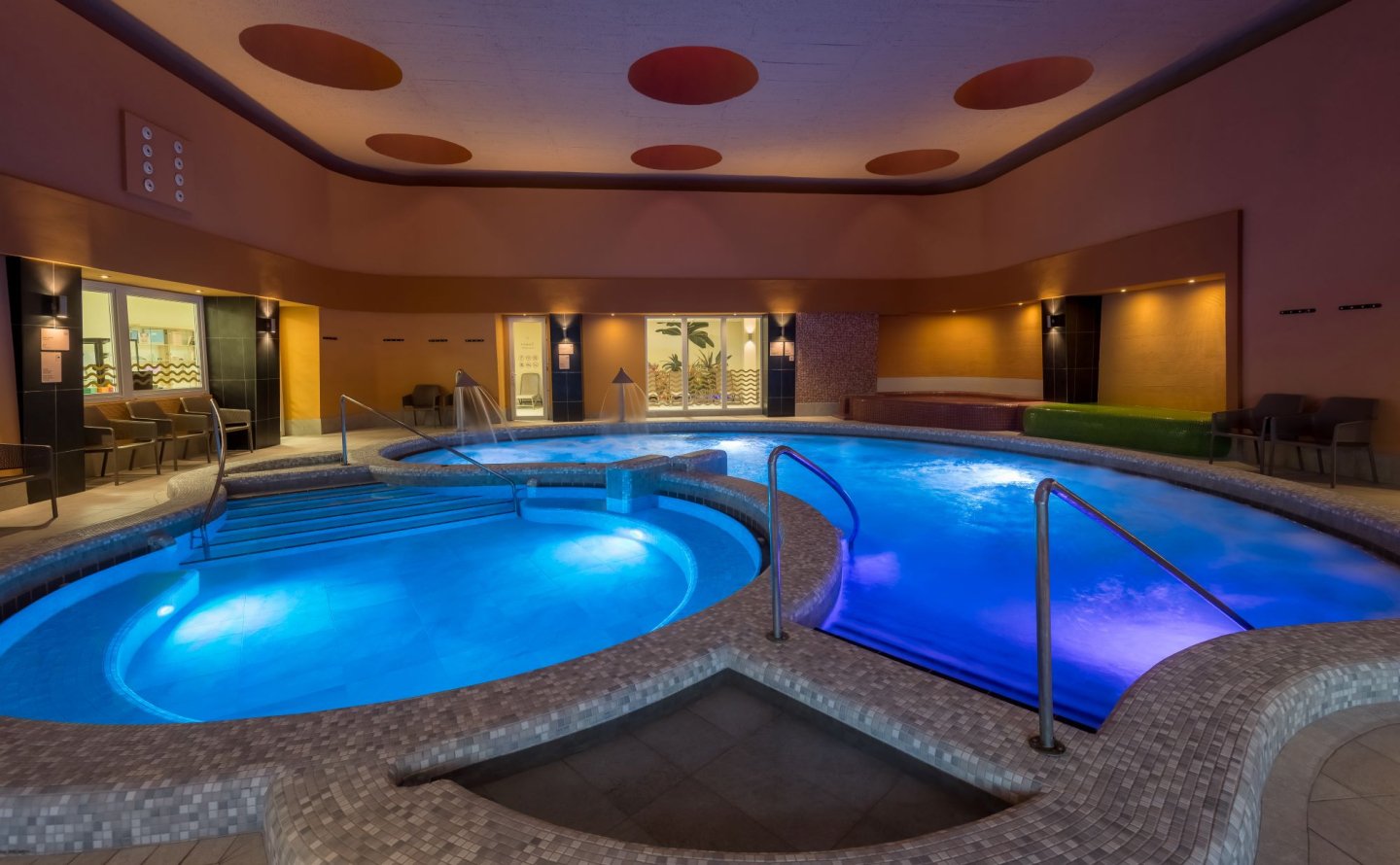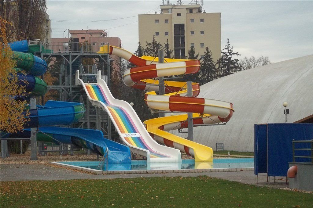 Hosté hotelu mohou přejít z hotelové haly rovnou do areálu koupaliště. Recepce, výtah, restaurace. Hotelový wellness nabízí zážitkový a dětský bazén, vířivku, sauny, Kneipův chodník. Restaurace, turecká kavárna, bar, solná jeskyně, posilovna, kadeřník, pedikúra, manikúra, úschovna kol. Parkoviště za poplatek, zapůjčení županu za poplatek (cca 2 EUR/os./noc).