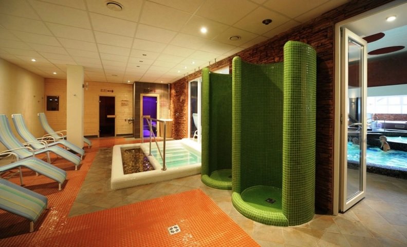 Hosté hotelu mohou přejít z hotelové haly rovnou do areálu koupaliště. Recepce, výtah, restaurace. Hotelový wellness nabízí zážitkový a dětský bazén, vířivku, sauny, Kneipův chodník. Restaurace, turecká kavárna, bar, solná jeskyně, posilovna, kadeřník, pedikúra, manikúra, úschovna kol. Parkoviště za poplatek, zapůjčení županu za poplatek (cca 2 EUR/os./noc).