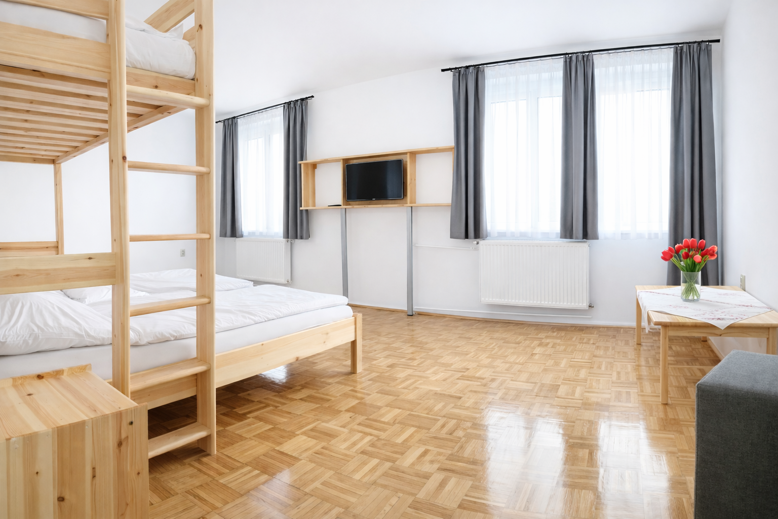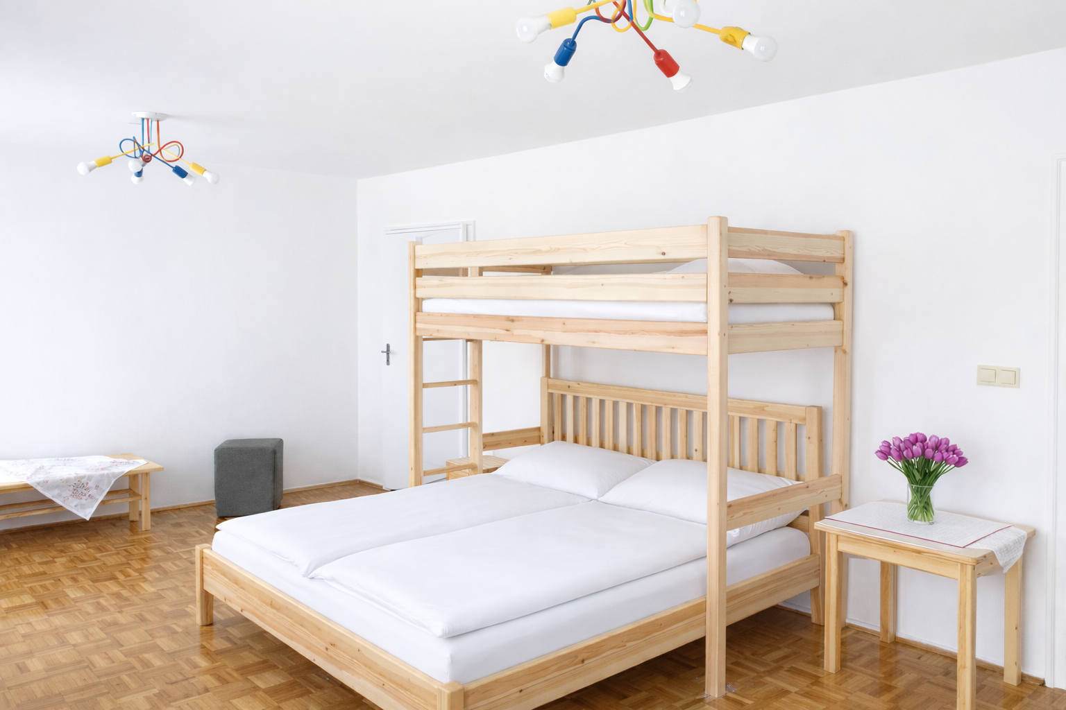 2 lůžkové pokoje se společnou kuchyní2 lůžkové pokoje s přistýlkou (pevné lůžko), vlastní kuchyňVšechny pokoje jsou s balkonem