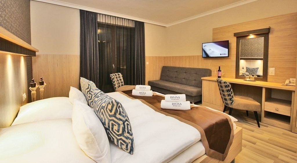 Luxusně zařízené pokoje. Elegantní, moderní a velké dvoulůžkové pokoje s přistýlkou a balkonem, vlastní sociální zařízení, fén, TV/ sat., minibar, trezor.Individuelně ovládaná klimatizace 8,- EUR/den Každý pokoj je v určitých detailech jiný a jedinečný.I když jsou sladěny s určitým tématem, všechny mají své jedinečné kouzlo, které je vlastní dané místnosti.