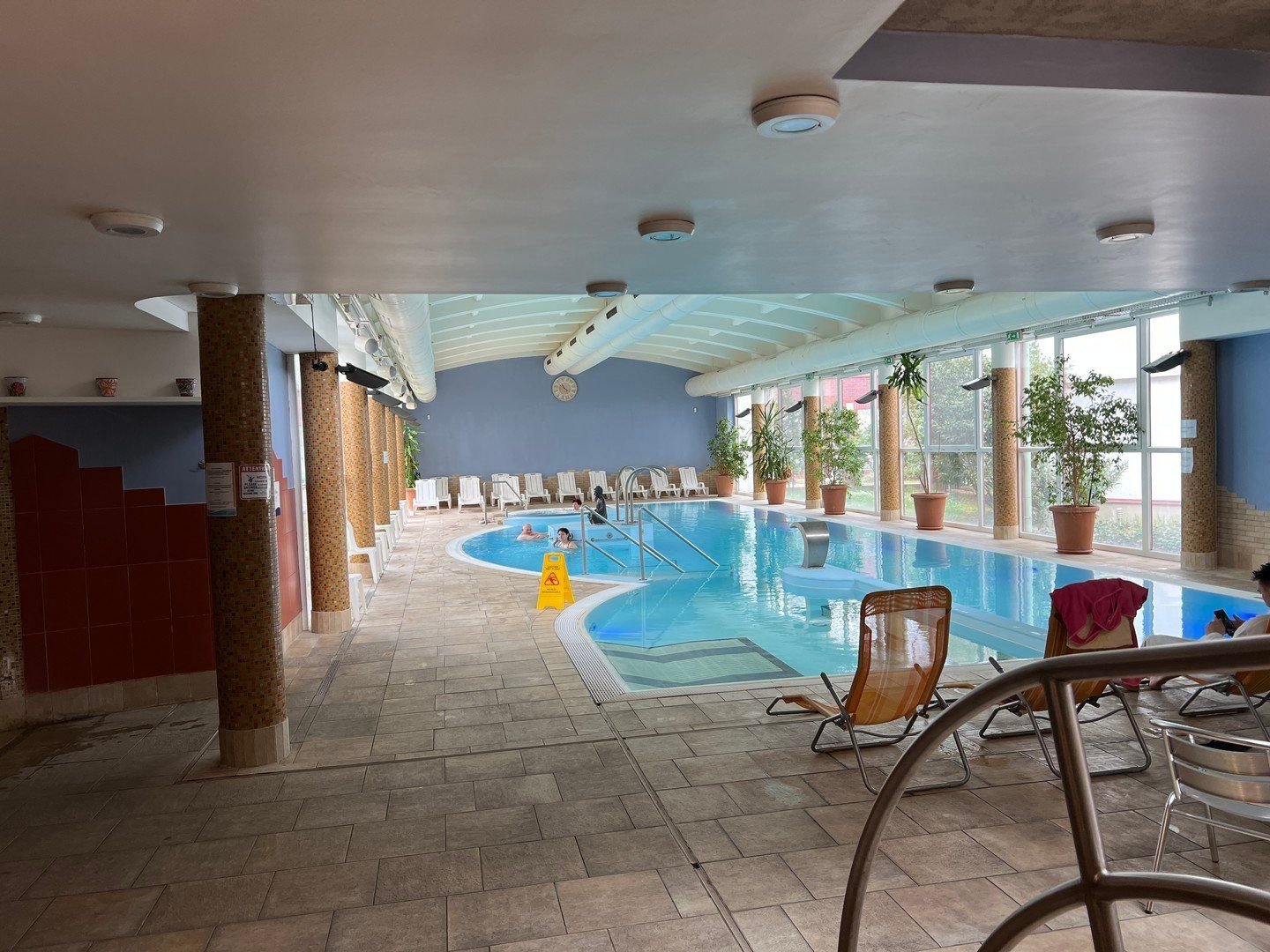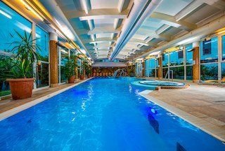 Hotel má krásnou vstupní halu s recepcí, restauraci a kavárnu s terasou. Nabízí výtah a konferenční sál. Klientům je k dispozici velká terasa s lehátky a slunečníky. Hotel disponuje krytým termálním bazénem, whirlpoolem a saunou. U hotelu je parkoviště zdarma.