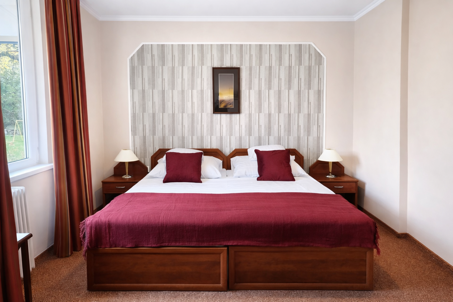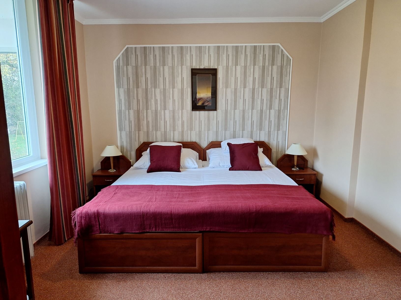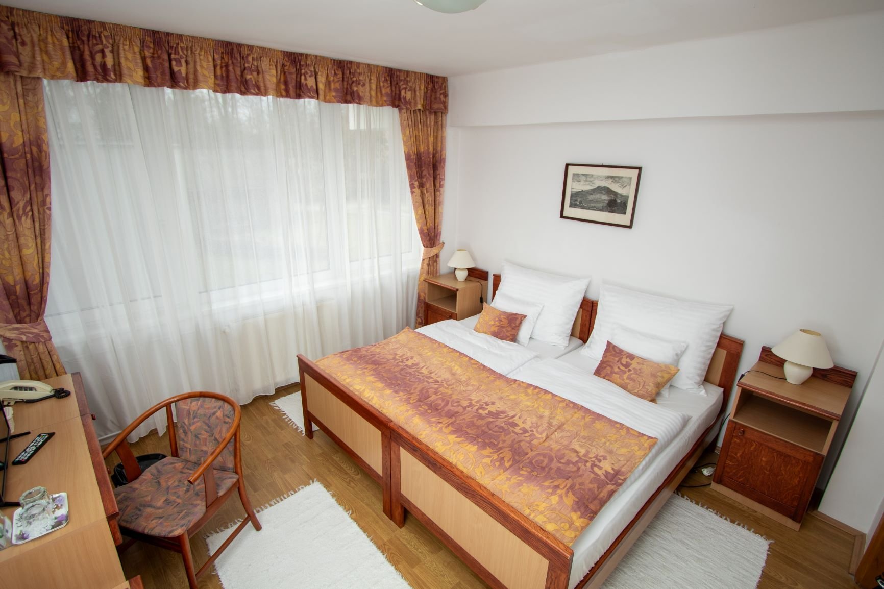 Prostorné, renovované dvoulůžkové pokoje s možností přistýlky a příslušenstvím - televize, telefon, lednice, balkon.