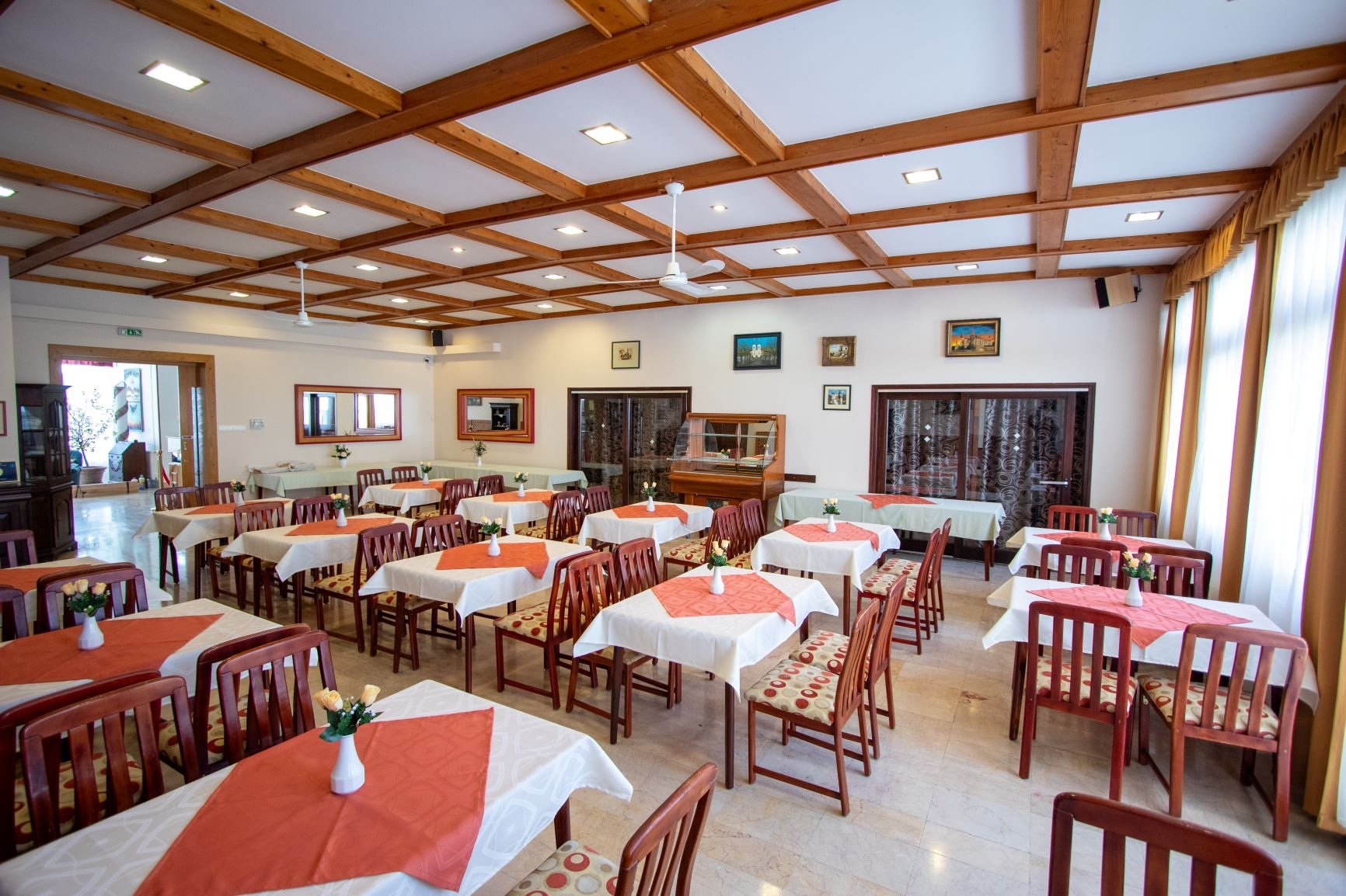 Snídaně bohatým bufetem. Možnost dokoupení polopenze - večeře s obsluhou, 3 chodové menu, výběr ze dvou jídel, salátový bufet.