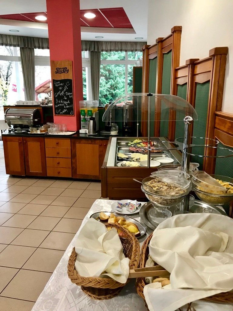 Snídaně nebo polopenze. Snídaně bufetovým způsobem, dvouchodová večeře s obsluhou výběrem ze dvou jídel, malý nápoj. V den příjezdu káva a sušenka.