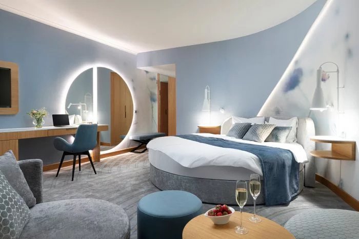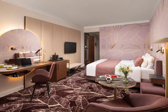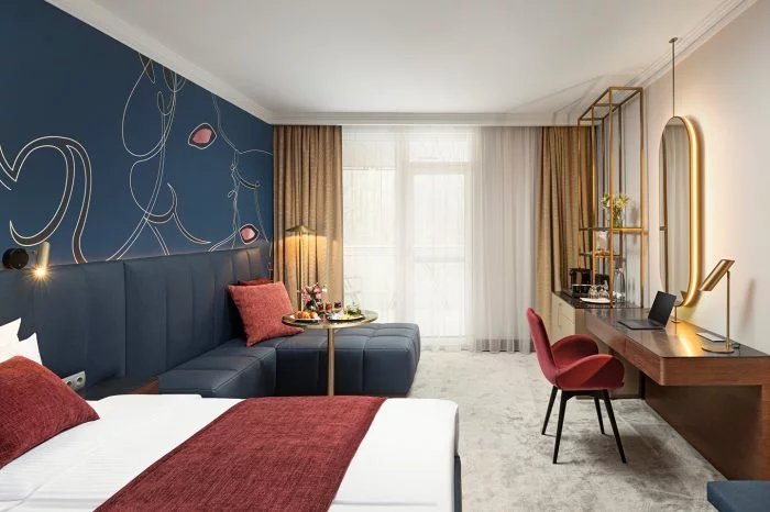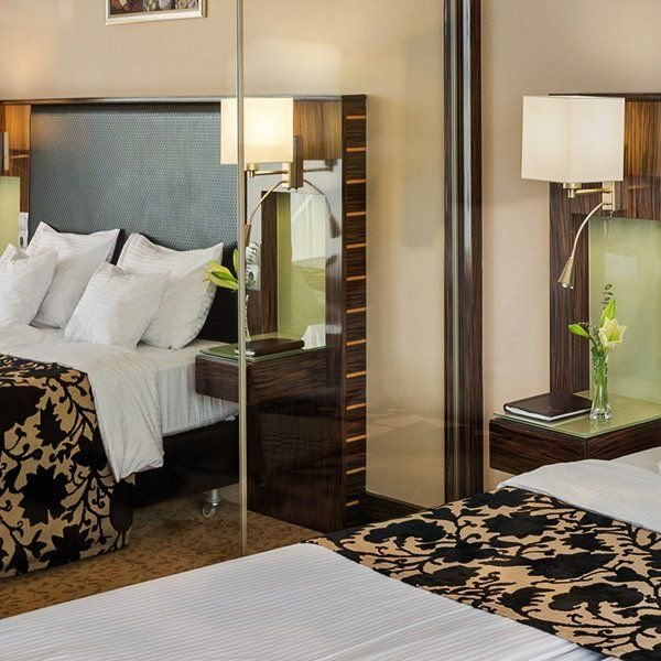 Dvoulůžkové pokoje s možností přistýlky, pokoje více typů (Premium, Oriental s kulatou postelí, Grand a King s vířivkou), s příslušenstvím, internetová přípojka, klimatizace, telefon, TV, trezor, minibar.