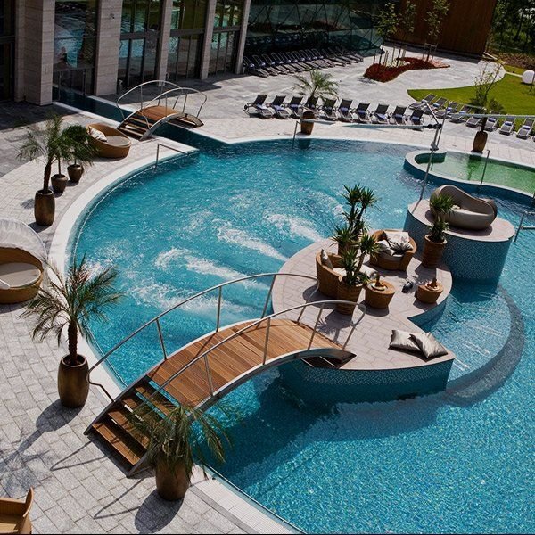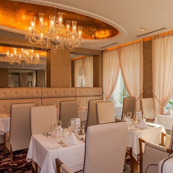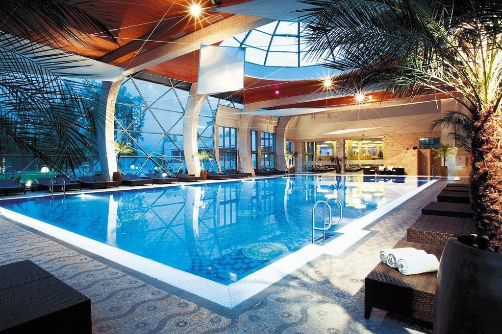 Restaurace Onyx, zimní zahrada s restaurací, kavárna s krbem, WiFi, Luna bar.Wellness o rozloze 10 000 m2, 22 bazénů : vnitřní i vnější, plavecké i léčivé, dětské, velká vířivka, Kneippův bazén, ostrov saun (bio, finská, růžová, aroma, pára), fitness denní programy, zapůjčení županů a pantoflí – vše v ceně. Denní sportovní a fitness program.