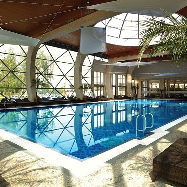Moderní hotel vybudovaný na louce na okraji města v klidném prostředí, poblíž soustavy sedmi jezer, s vlastním léčivým pramenem, uspokojí i ty nejnáročnější klienty.
