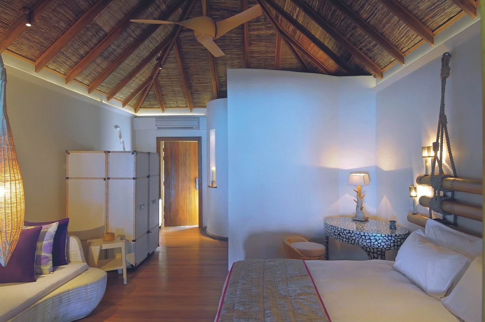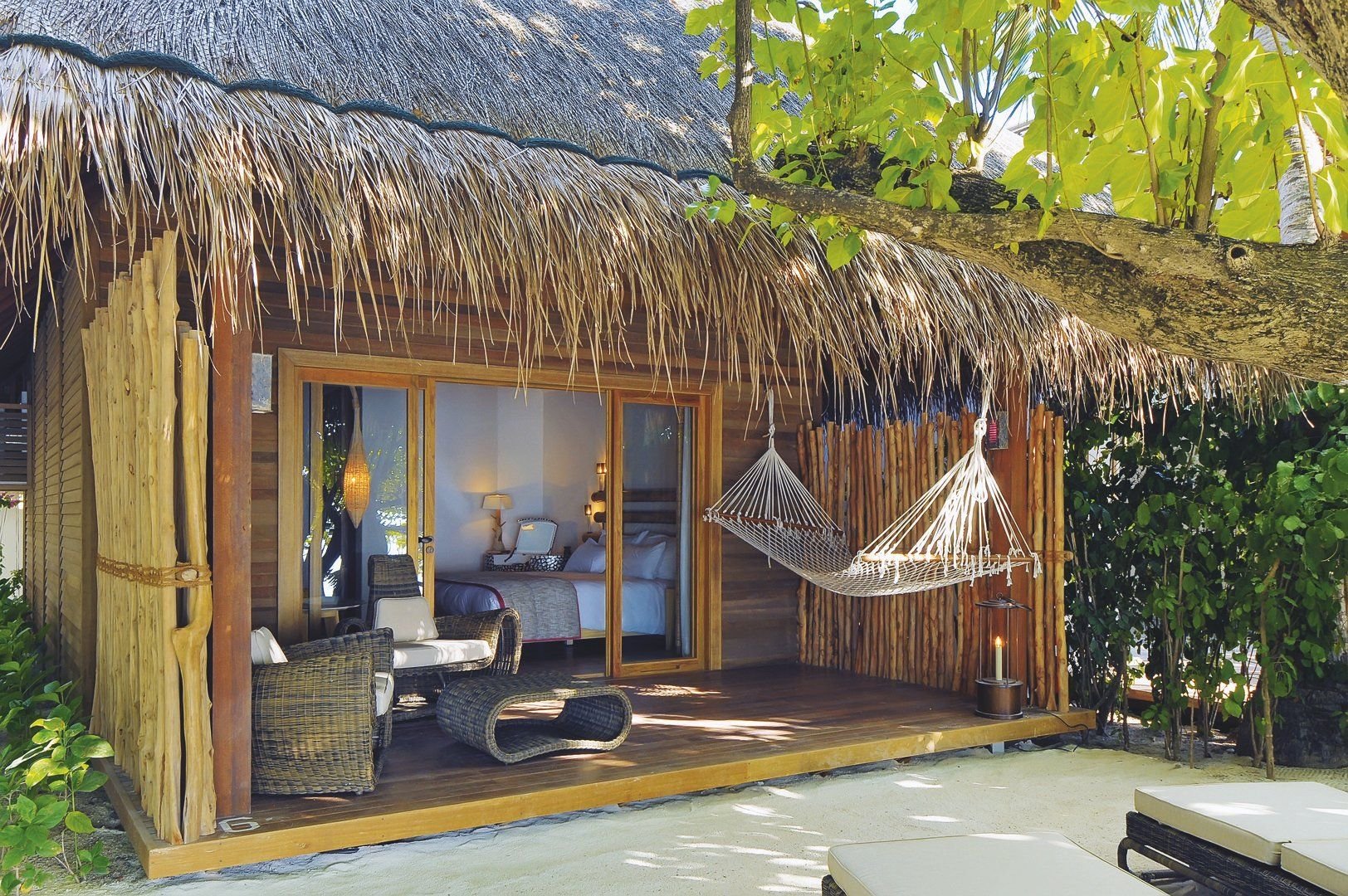 Plážové vily s manželskou postelí mají koupelnu (sprcha, WC, vysoušeč vlasů) a venkovní terasu s posezením a výhledem na moře. Dále klimatizace, stropní ventilátor, telefon, minibar, trezor, set pro přípravu kávy a čaje. Maximální obsazenost pokoje jsou 3 osoby. Za příplatek možnost ubytování ve vodní vile nebo senior vodní vile (kapacita až pro 4 osoby).