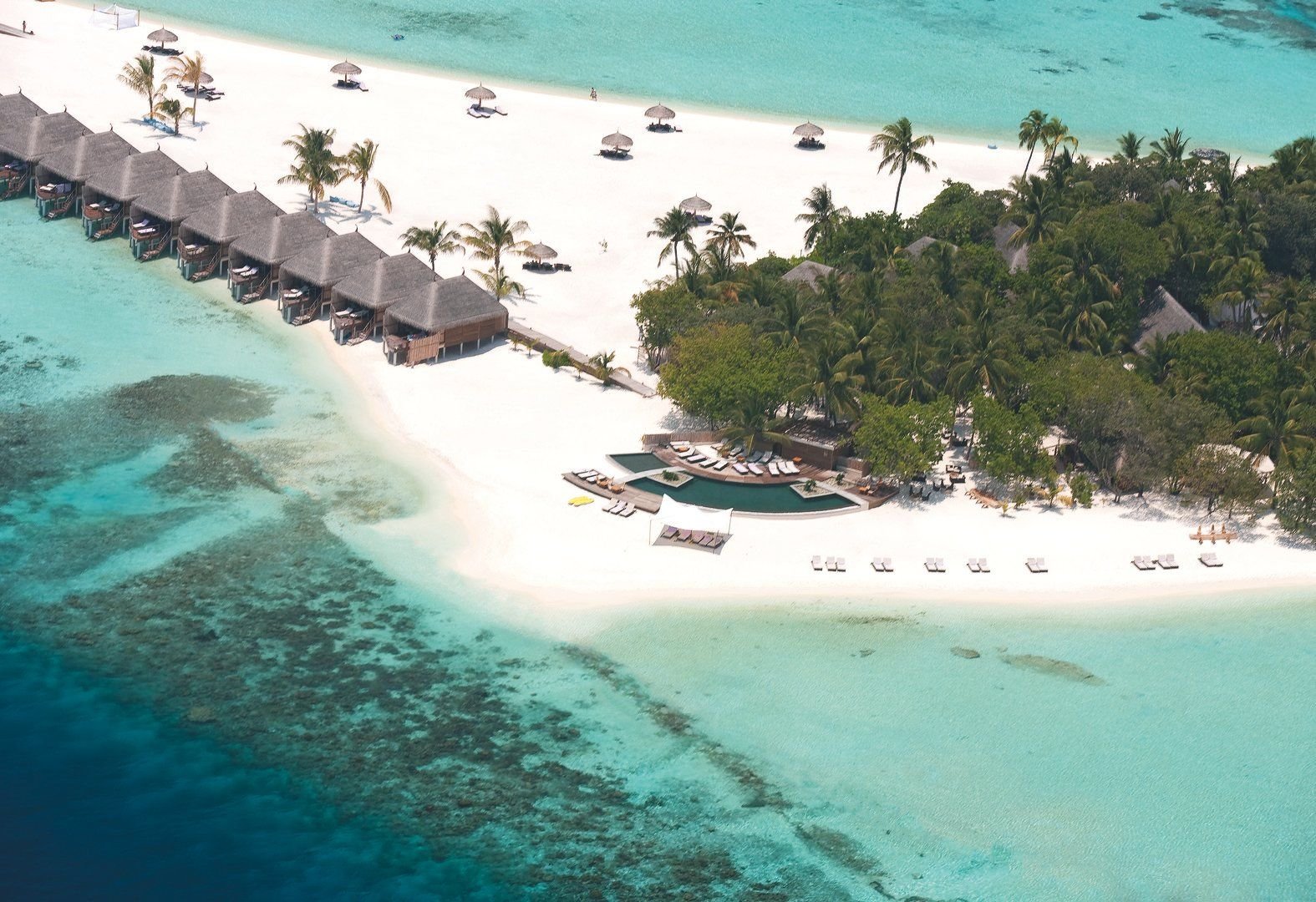 Constance Moofushi Maldives je stylový all-inclusive resort v srdci South Ari atolu, ideální pro páry i potápěče. Nabízí elegantní plážové a nadvodní vily, skvělé šnorchlování přímo z pláže, přístup k jedněm z nejlepších potápěčských lokalit Malediv a uvolněnou „barefoot luxury“ atmosféru. Výborná gastronomie, kvalitní vína a služby na vysoké úrovni z něj dělají perfektní volbu pro ty, kdo hledají luxus bez formálnosti.