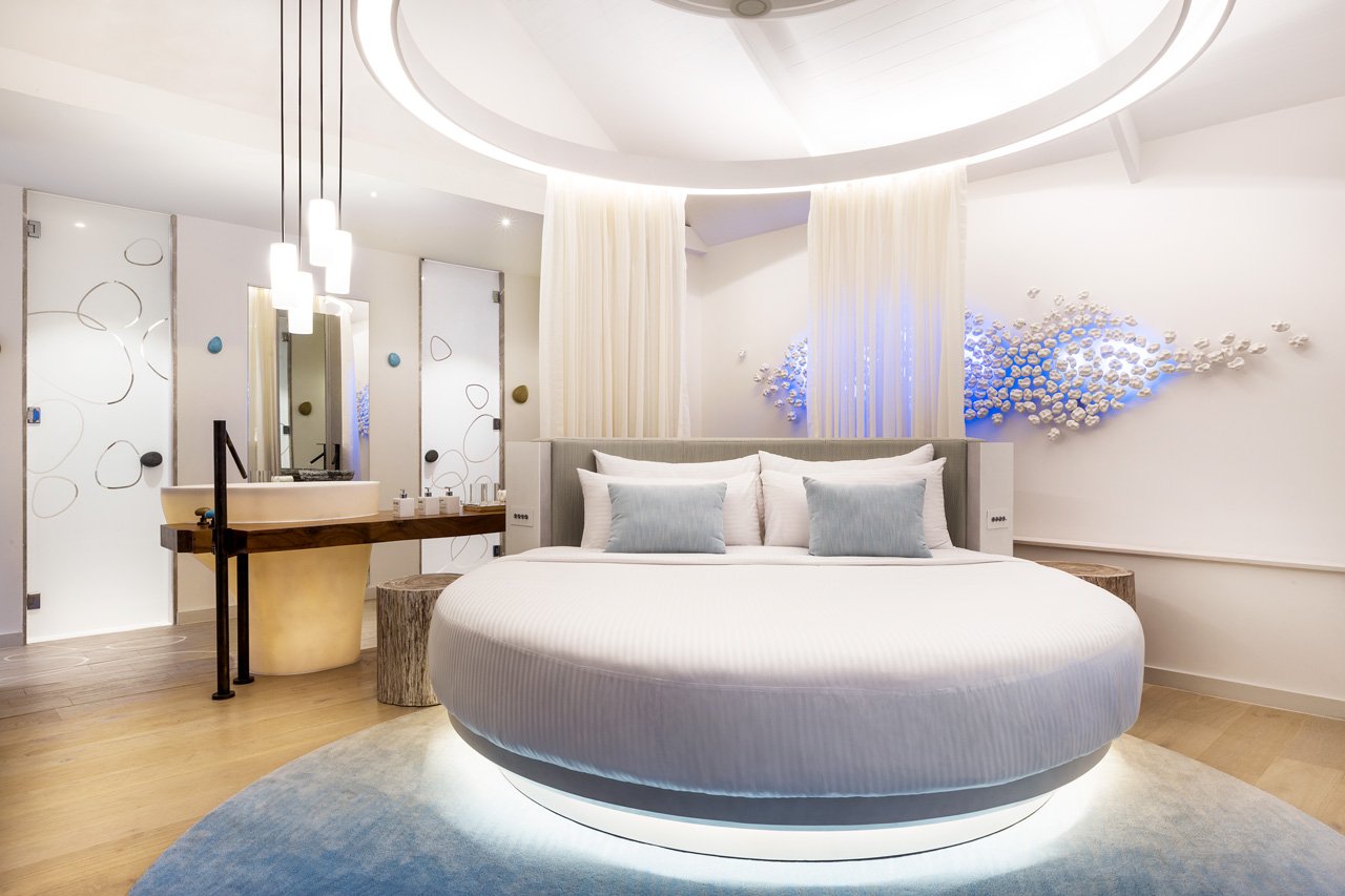 Na výběr je deset kategorií ubytování včetně exkluzivní vily na samém konci mola. Ať už zvolíte pavilon na písečné pláži nebo vilu stojící nad lagunou s přímým přístupem do moře, čekají na vás krásné světlé a vzdušné interiéry s barevnými doplňky zasazené do tropické zeleně. Beach Pavilion (60 m²): Pokud sníte o životě ve stylové plážové chatce na tropickém ostrově se vším komfortem, toto je ideální volba. Blíž k pláži už ani být nemůžete. Tento elegantní plážový pavilon s doškovou střechou je vybavený manželskou postelí nebo dvěma samostatnými lůžky a pyšní se soukromou terasou s posezením a přímým přístupem na pláž. Větší rodiny či skupiny přátel můžou využít možnost propojení dvou sousedních pavilonů. Beach Villa (95 m²) Představte si, jaké by to bylo žít ve stylové vile s doškovou střechou na krásné pláži, relaxovat v tropické vaně ve své zastřešené venkovní koupelně a číst si na soukromé terase s výhledem na oceán. Tento sen se může snadno stát realitou. Stačí se ubytovat v této dokonalé vile, která nabízí přímý přístup na skrytou pláž s opalovacími lehátky a prostorný interiér s manželskou postelí a čtecím Beach Pool Villa (116 m²) Pokud toužíte po dokonalé dovolené jako vystřižené z pohlednice, tato plážová vila se soukromým bazénem vás rozhodně nezklame. Je nasměrovaná na západ a nabízí přímý přístup na nádhernou pláž s lehátky na opalování. Kromě toho se můžete těšit na venkovní koupelnu se zastřešenou vanou, bazénem (3.5 m x 2.3 m x 1.4 m) a venkovní sprchou. Nechybí samozřejmě ani pohodlná manželská postel a terasa s výhledem na pláž. Maximální kapacita: 2 dospělí a 1 dítě do 17 let. Two Bedroom Family Beach Pavilion (120 m²) Užijte si dovolenou snů na tropickém ostrově s rodinou nebo přáteli v tomto dvojitém plážovém pavilonu s doškovou střechou a přímým přístupem na pláž. Obytný prostor se skládá ze dvou oddělených apartmá se samostatným vchodem a terasou pro maximální soukromí. Každé apartmá má vlastní ložnici s manželskou postelí nebo dvěma oddělenými lůžky a koupelnu. Větší skupiny můžou využít možnost propojení dvou sousedních pavilonů. Maximální kapacita: 4 dospělí a 2 děti do 17 let nebo 2 dospělí a 4 děti do 17 let. Family Lagoon Pavilion (130 m²) Objevte svůj nový tropický domov v podobě tohoto rodinného pavilonu, který se nachází přímo na pláži u oceánu. Jde o ideální variantu pro rodiny s malými cestovateli, kteří netouží po ničem jiném než po celý den stavět hrady z písku a objevovat ostrov. Pavilon disponuje jedním vchodem, ale zároveň je důmyslně rozdělen na dva samostatné pokoje s vlastní ložnicí (manželská postel nebo dvě oddělená lůžka), koupelnou i venkovní terasou, takže poskytuje dokonalé soukromí. Maximální kapacita: 4 dospělí a 2 děti do 17 let nebo 2 dospělí a 4 děti do 17 let. Water Villa (98 m²) Co může být lepší, než skočit z vlastní terasy přímo do křišťálově čistého moře? Tato vila, která se tyčí nad vodou, představuje dokonalý tropický domov. Uvnitř vás čeká vzdušný světlý interiér s neuvěřitelně pohodlnou manželskou postelí, čtecím koutkem a velkou prosvětlenou koupelnou. Díky okénku v podlaze budete mít podmořský život jako na dlani a večer můžete pozorovat úchvatný západ slunce z relaxační sítě zavěšené nad vodou. Maximální kapacita: 3 dospělí nebo 2 dospělí a 2 děti do 17 let. Stravování