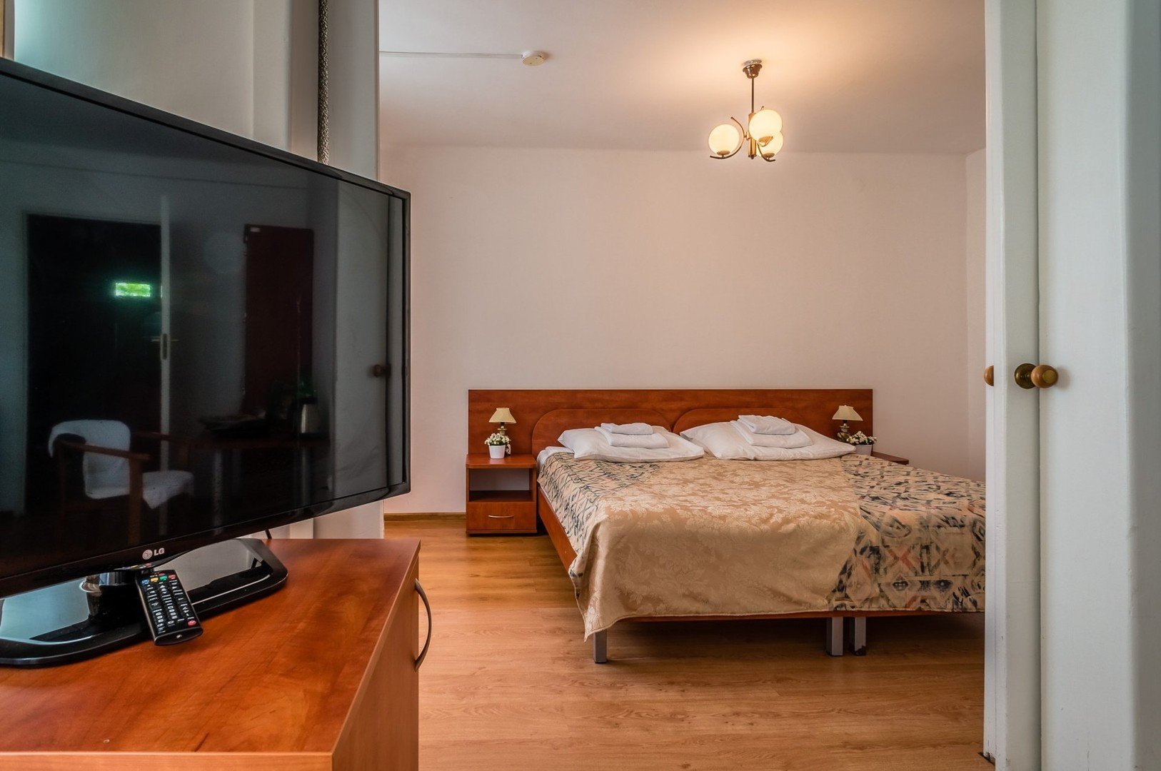 Dvoulůžkové pokoje jsou vybaveny vlastním soc. zařízením (koupelna, vysoušeč vlasů WC), TV/Sat., varnou konvicí a terasou nebo balkonem.*K dispozici také jednolůžkové pokoje