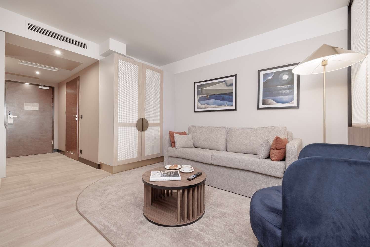 Hotelové pokoje jsou vybavené vlastním soc. zařízením (koupelna, vysoušeč vlasů WC), TV/Sat., trezorem, klimatizací, minibarem, Wi-Fi připojením a balkonem.