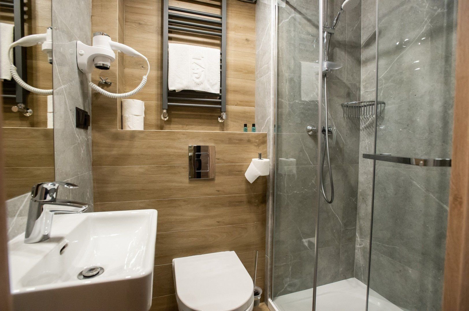 Moderní dvolůžkové pokoje standard mají vlastní příslušenství (koupelna, fén, WC) a dále jsou vybaveny TV, telefonem a balkonem.