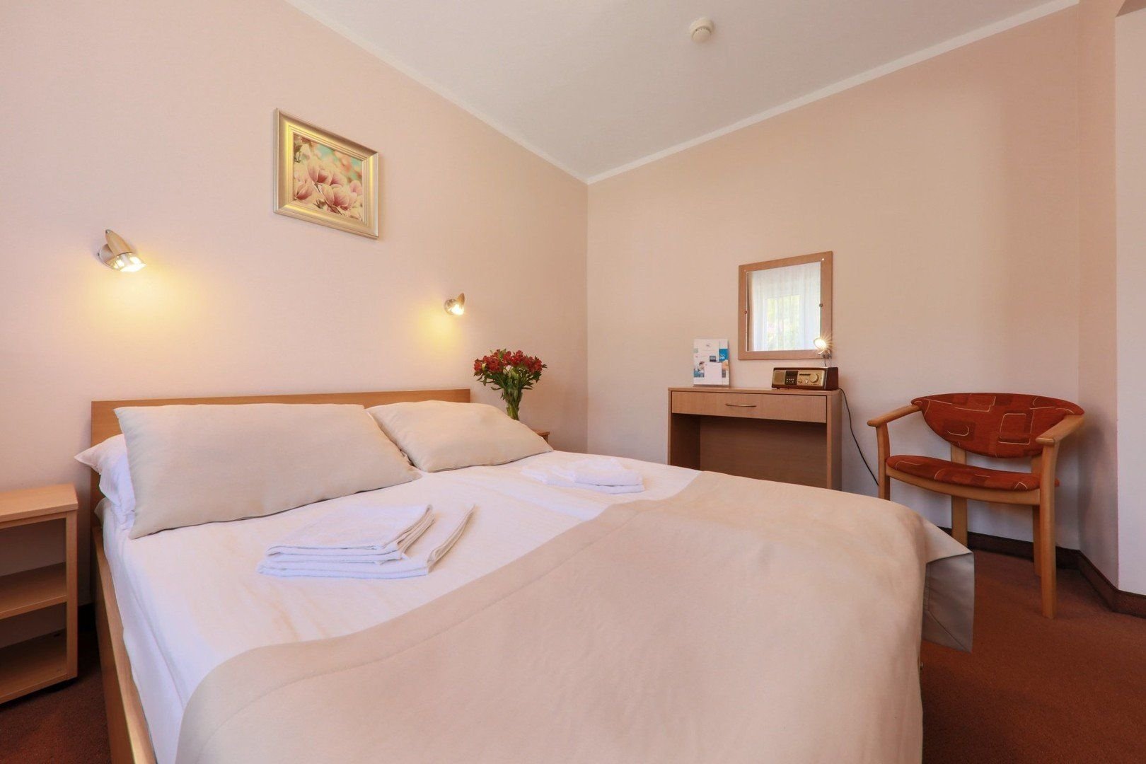 Moderní dvoulůžkové pokoje mají vlastní příslušenství (koupelna, WC) a dále jsou vybaveny TV, setem na přípravu kávy nebo čaje a Wi-Fi.