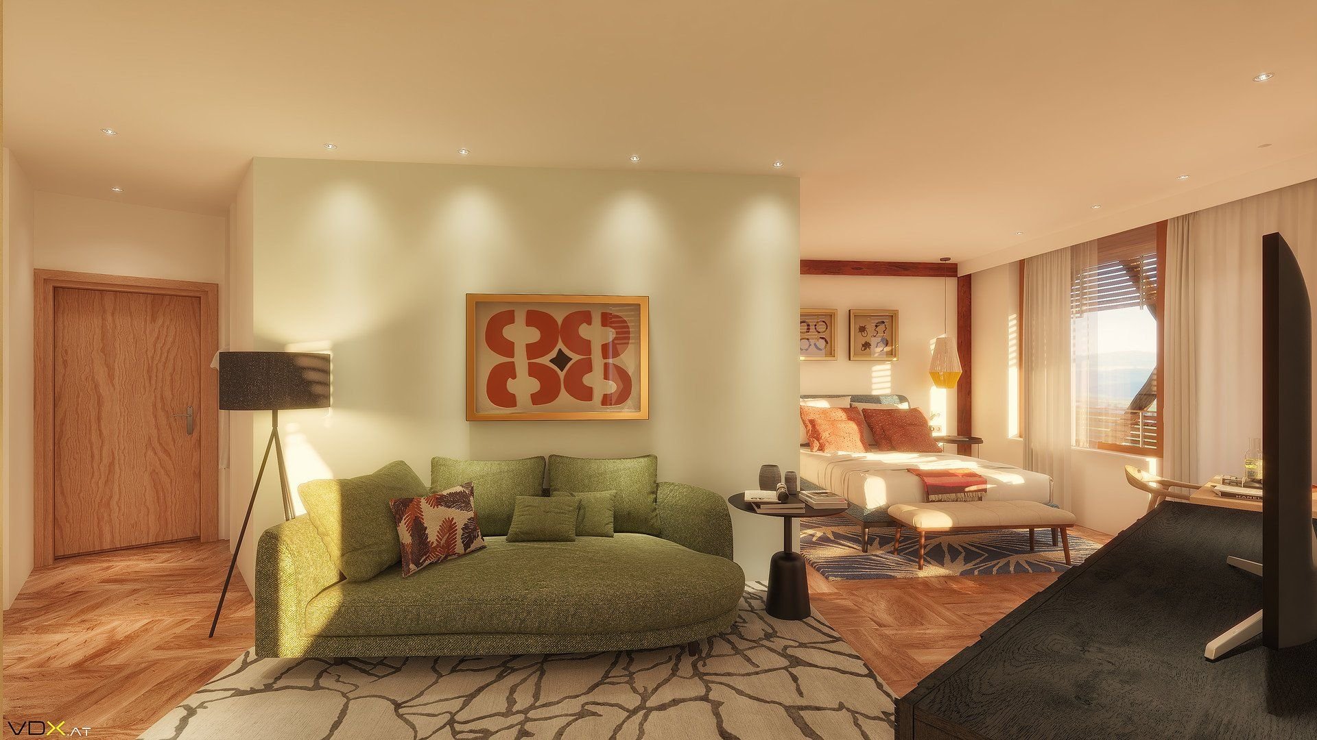 *Dvoulůžkový pokoj Comfort 30m²*Dvoulůžkový pokoj Superior 35m² (výhled na Mühlviertel)*Junior Suite Comfort 35 m² (3 dospělé osoby, palanda, pohovka) *Junior Suite Superior 45 m² (pro 3 dospělé osoby, koupelna s vanou a sprchou, pohovka, minibar, fén, telefon, TV, rádio) *Junior Suite Deluxe 45 m² (balkón s výhledem na Mühlviertel, oddělena ložnice od obývacího pokoje)*SPA Suite 45 m2 (privátní sauna)