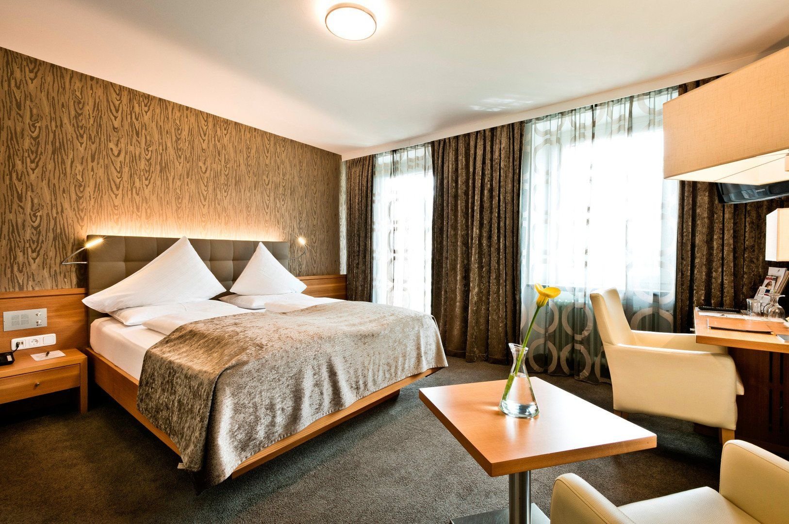 Elegantně a jednoduše zařízené pokoje.Dvoulůžkový pokojPokoj FamilyDvoulůžkový pokoj PlusVybavení pokojů: koupelna se sprchovým koutem a fénem, klimatizace, trezor, telefon, TV, mini bar (za poplatek).