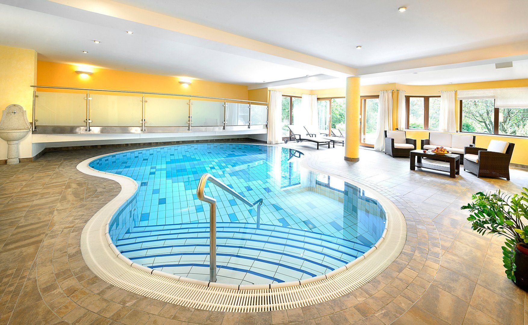 Recepce,hala/lobby, restaurace, výtah, terasa, parkoviště (zdarma), WiFi, uzamykatelná úschovna kol, nabíjecí stanice pro elektrická kola a auta, wellness, bazén, dětské hřiště. Kavárna na terase.Hotelové wellness (denně 15:00 - 18:30), které zahrnuje finskou saunu, parní lázeň, infračervenou kabinu a možnost využít krytý bazén (v provozu 7:00 - 19:00). Za poplatek lze zajistit masáže.
