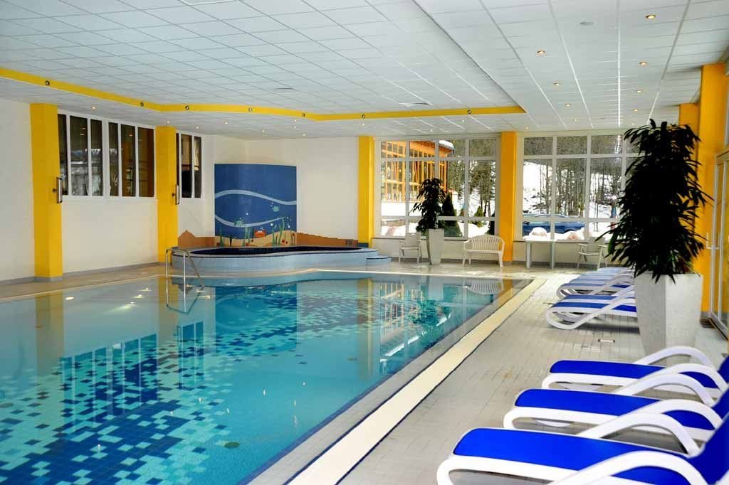 Recepce, lobby, restaurace vyhrazená pro hotelové hosty, stylová restaurace, à la carte restaurace, bar, zimní zahrada s posezením, WiFi, fitness, zahrada s lehátky a slunečníky, dětský koutek - o sezonu odpolední program, úschovna jízdních kol a lyží, půjčovna jízdních kol, vyhrazené parkoviště, nabíjecí stanice Tesla.Wellness (od 16 let): panoramatický krytý bazén nebo odpočinek ve velké sauně, pro hosty je připravena dále relaxační místnost, finská sauna, pára, infračervená kabina. Za příplatek jsou dostupné masáže a kosmetické procedury a solárium. Šipky a stolní fotbal