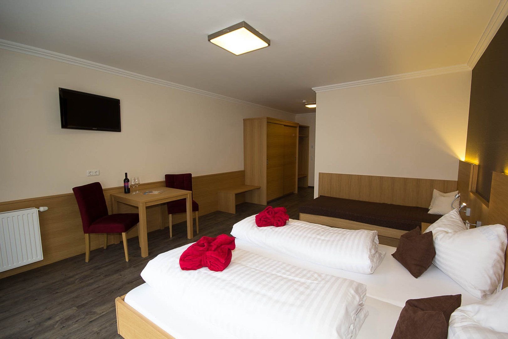 Jednoduše a čistě zařízené pokoje.Typy pokojů:*Dvoulůžkový pokoj Standard*Dvoulůžkový pokoj Standard s přistýlkou*Family pokoj Standard Vybavení: koupelna se sprchou, Wi-Fi, TV.