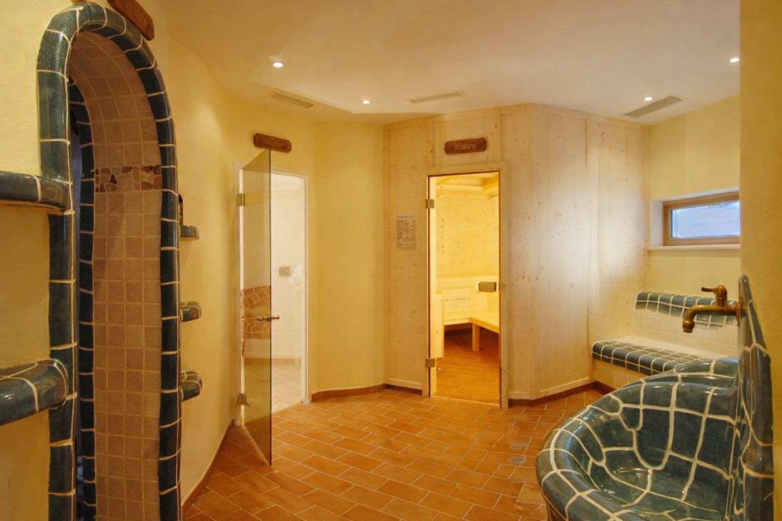 Recepce, lobby s krbem, restaurace vyhrazená pro hotelové hosty, stylová restaurace Kaminstube, bar, sluneční terasa s posezením, WiFi, úschovna kol, lyží a lyžařských bot, výtah, vyhrazené parkoviště. Pro děti venkovní dětské hřiště a herna.Pro dlouhé zimní večery k dispozici kulečník a stolní tenis, v létě pak přírodní koupaliště o velikosti 400 m² s prostorem na opalování, dva osvětlené tenisové kurty a sportovní hřiště na fotbal, volejbal a badminton.Wellness: 120 m² velké wellness nabízí biosaunu, venkovní saunu, parní lázeň, kabinu s infračerveným zářením, zážitkovou sprchu, relaxační místnost.
