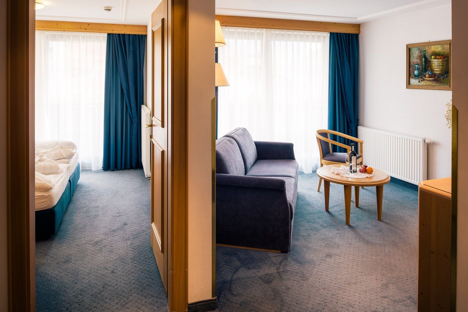 Útulné a čistě zařízené pokoje.Typy pokojů:*Dvoulůžkový pokoj Standard*Dvoulůžkový pokoj Comfort*Family pokoj Classic*Comfort Suite*Superior SuiteVybavení: Wi-Fi, TV, telefon, koupelna se sprchou/vanou a fénem.