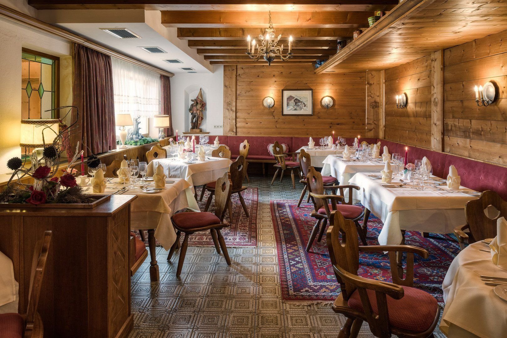 Recepce, výtah, sušička bot, Wi-Fi, snídaňová místnost, restaurace, terasa, parkoviště (zdarma), garáž (za poplatek).Wellness: vnitřní bazén, parní lázně, infračervená komora.