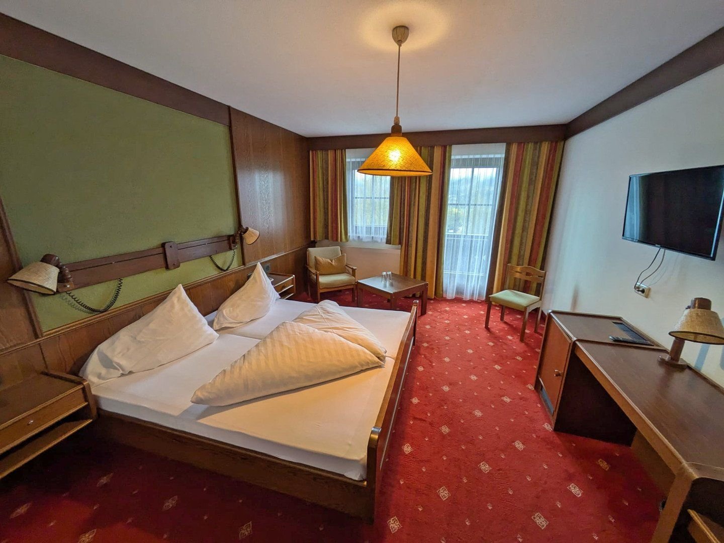 V hotelu se nachází celkem 32 pokojů. Všechny jsou zařízené v tradičním alpském stylu.Typy pokojů:* dvoulůžkové pokoje s 1 přistýlkou - rozloha: 22m2 (typ A) a 25m2 (typ B)Vybavení: kabelová televize, telefon, radio, koupelna se sprchou nebo vanou, samostané WC, fén, kosmetické zrcátko, balkon