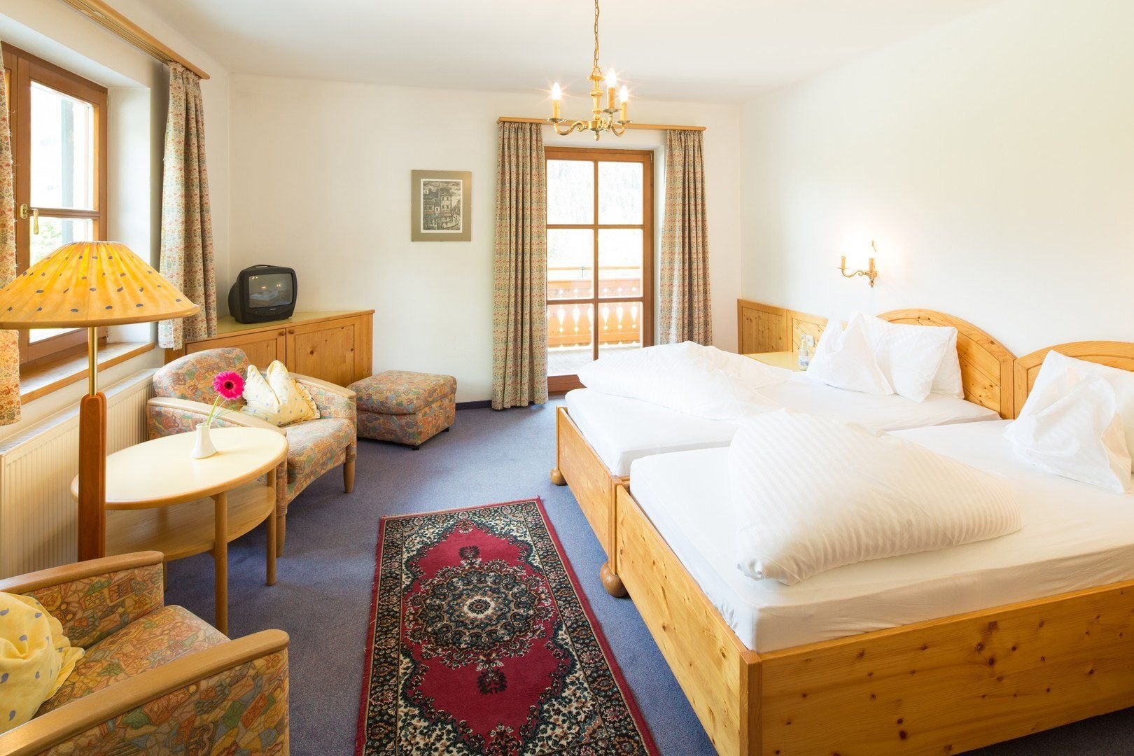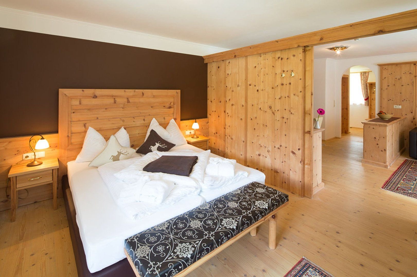 Stylové horské pokoje nabízí pohodlí a skvělé zázemí k odpočinku.Typy pokojů:*Dvoulůžkový pokoj Eckpreis* Dvoulůžkový pokoj Almrausch* Dvoulůžkový pokoj s 2 přistýlkami Almrausch* Jednolůžkový pokojVybavení: TV s integrovaným rádiem, telefon, sprcha/vana, sociální zařízení, fén, kosmetické zrcátko, některé mají balkon.