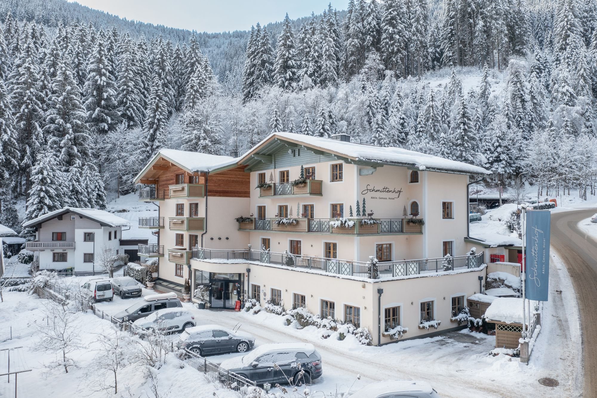 Hotel Der Schmittenhof je čtyřhvězdičkový horský hotel rodinného typu, který se nachází nad střediskem Zell am See. Díky skvělé poloze, pouze pár metrů od lanovky Schmittenhöhe a sjezdovkou, je ideálním místem pro lyžaře. Hotel nabízí komfortní pokoje, které jsou vybaveny balkonem nebo terasou a nabízejí výhled na jezero nebo na okolní horskou krajinu. Součástí je také hotelová restaurace s lokálními specialitami i mezinárodní kuchyní. Ideálním místem pro odpočinek je místní wellness se saunou a párou.