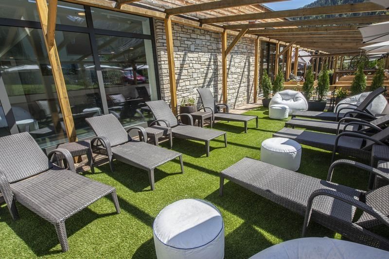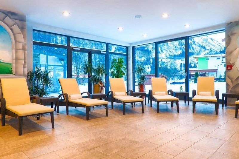 Recepce / lobby, restaurace vyhrazená pro hotelové hosty, bar, wi-fi připojení k internetu, sluneční terasa s posezením, úschovna kol a lyží.300 m² hotelové wellness (16:00 - 21:00) zahrnuje bazén, finskou saunu, bio saunu, parní lázní, infrakabinu a relaxační koutek s lehátky.