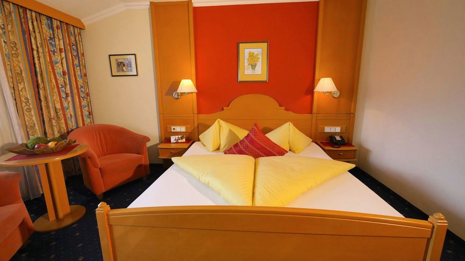 Hotel se skládá z hlavní budovy a depandací, které jsou spojeny podzemní chodbou. Budouvy jsou od sebe vzdálené cca 15 m. Pokoje/apartmá mají balkon s výhledem na hory. Typy pokojů:* dvojlůžkový pokoj Panorama* dvojlůžkový pokoj Standard* suite až pro 4 dospělé * rodinný pokoj pro 4 dospělé osobyVybavení pokojů: TV, telefon, rádio, koupelna, fén, balkón.