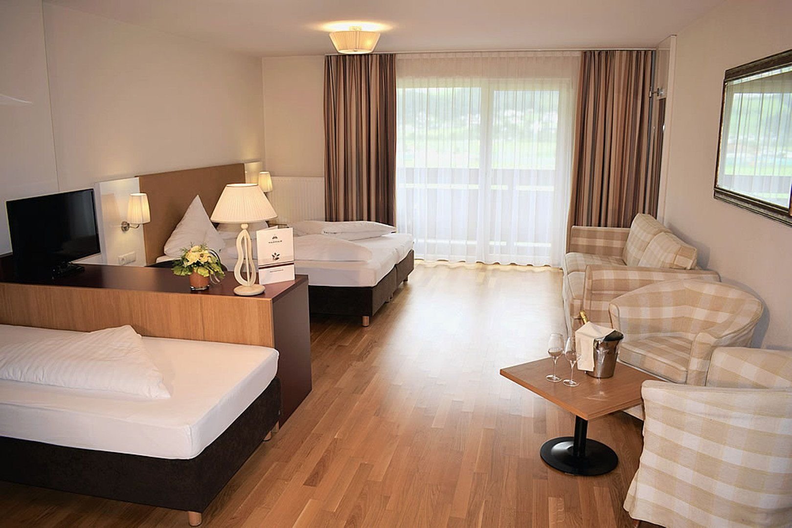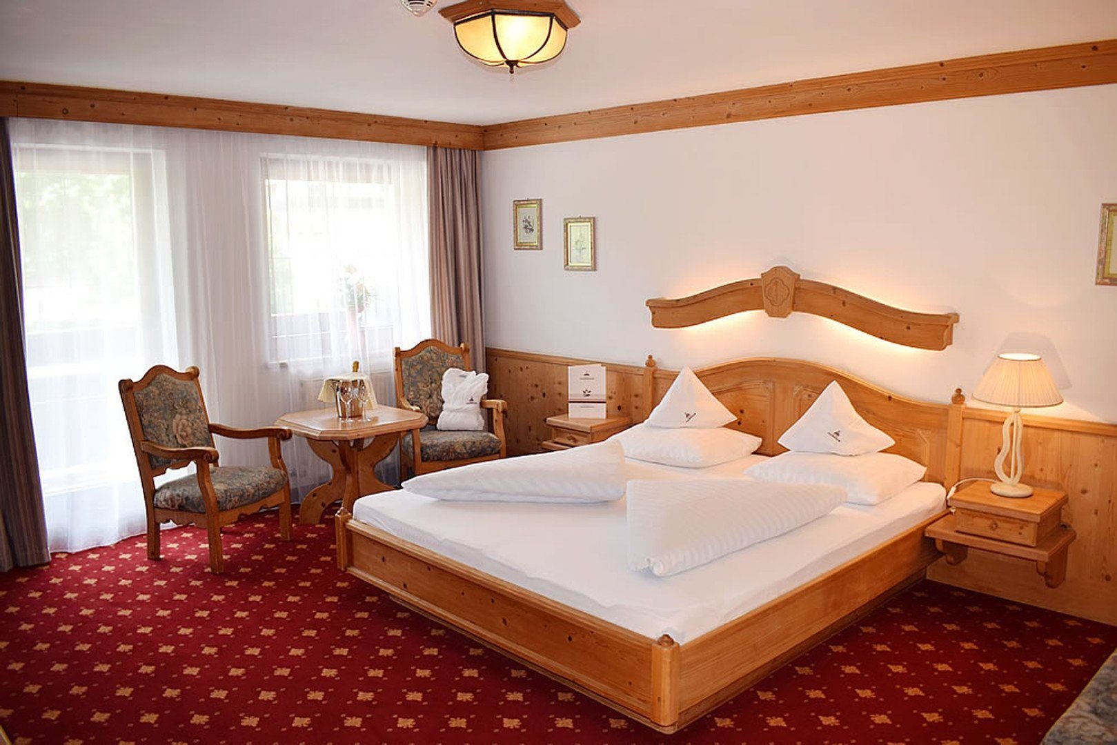 Hotel nabízí 35 pokojů,které jsou moderně vybavené, zařízené v tradičním alpském stylu. Typy pokojů:* dvoulůžkový pokoj - manželská postel* dvoulůžkový pokoj s 1 přistýlkou - manželská postel a pevné lůžko pro 1 osobu* dvoulůžkový pokoj s 2 přistýlkami - manželská postel a rozkládací pohovka pro 2 osobyVybavení: TV s plochou obrazovkou se satelitním přijímačem a zabudovaným rádiem, telefon, sprcha nebo vana s WC, vysoušeč vlasů, kosmetické zrcátko. Většina pokojů má balkon.