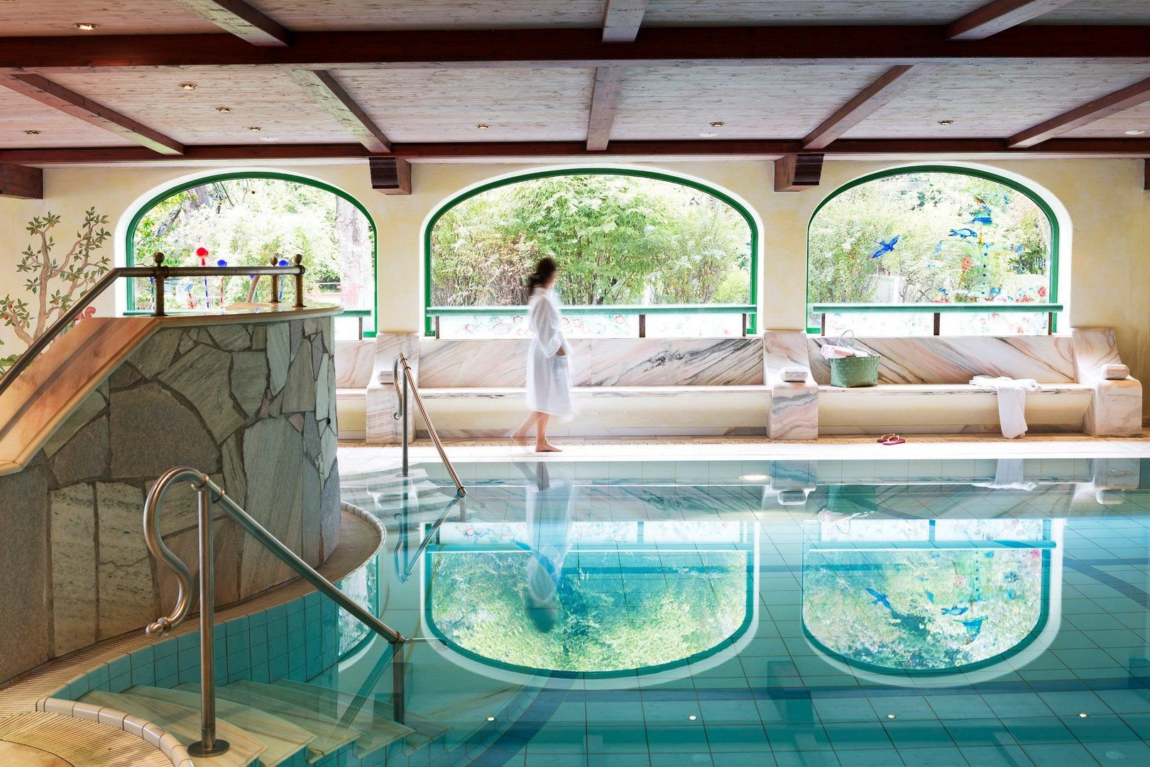 Recepce,restaurace, a la carte restaurace, bar, vinný bar, zahrada s přírodním jezírkem ke koupání, parkoviště, dětské hřiště a vnitřní herna, fitness.Nově od 2024 rozšířené moderní wellness s infinity bazénem, saunami, spa částí pouze pro dospělé, skluzavkových rájem a dětskou části Seppis.