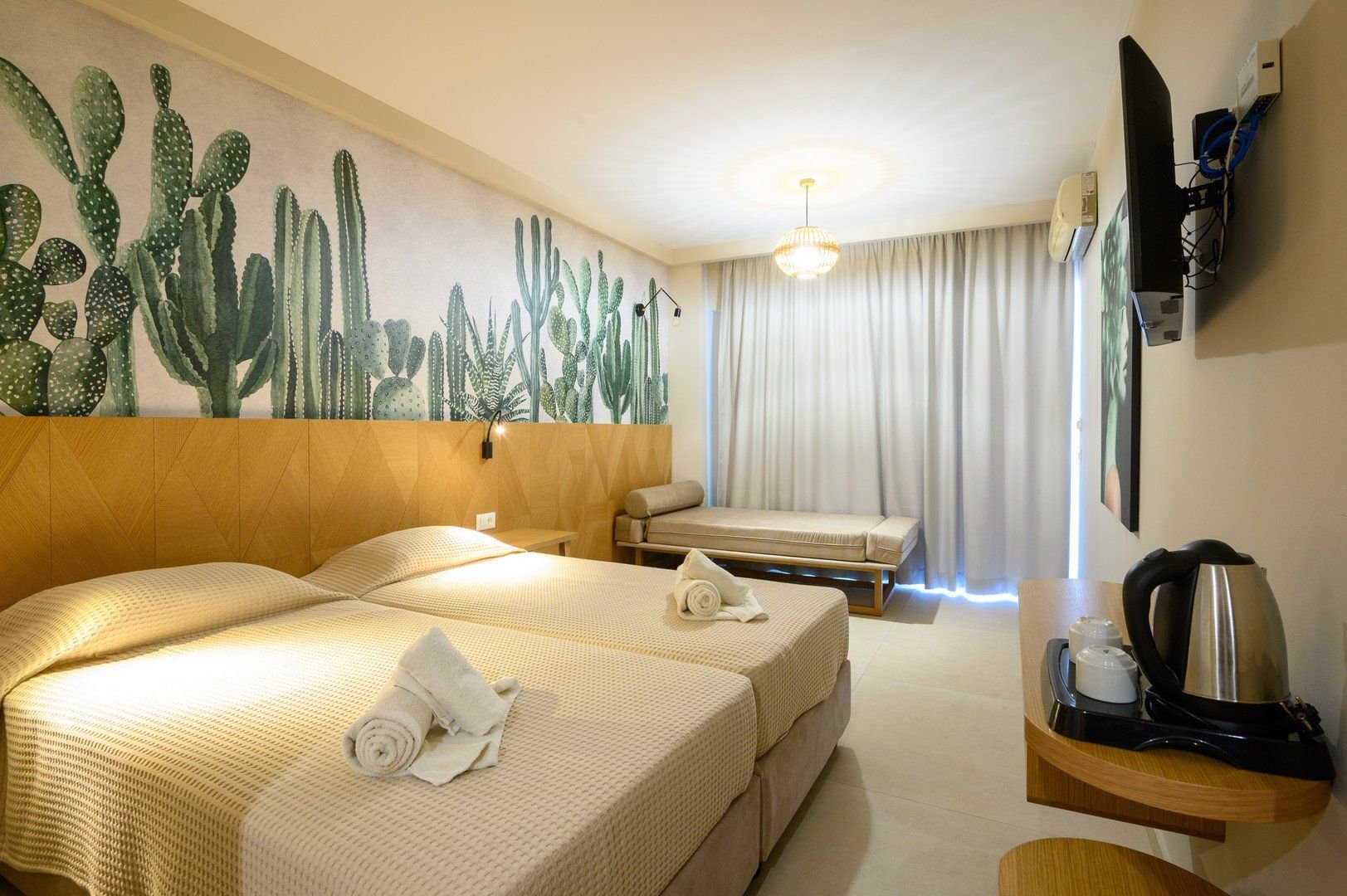 Dvoulůžkové pokoje s možností přistýlky mají vlastní příslušenství (koupelna, WC, sprcha, fén), telefon, TV/SAT, minilednička, klimatizace, trezor, Wi-Fi připojení, set na přípravu kávy/čaje. Všechny pokoje mají terasu nebo balkon. Za příplatek jsou k dispozici:Pokoje s výhledem po okolíPokoje s výhledem na mořeSuperior pokoje (mají navíc kávovar Nespresso)Rodinné pokoje (1 prostornější místnost s palandou)