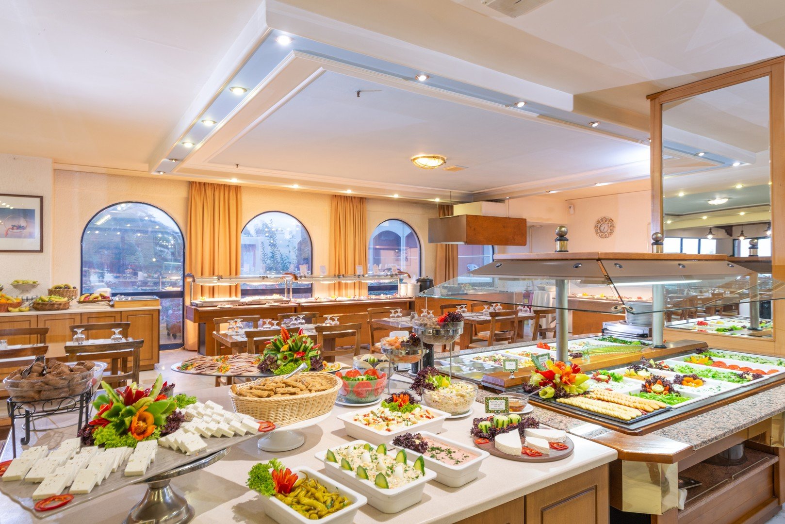 All inclusive zahrnuje snídaně (7:00-10:00), pozdní snídani, (10:00 - 11:00), obědy (12:45-14:30) a večeře (19:00-21:30) formou bufetu, během dne lehké občerstvení, nealkoholické nápoje a alkoholické nápoje místní výroby v časech a místech určených hotelem (10:00-00:00).