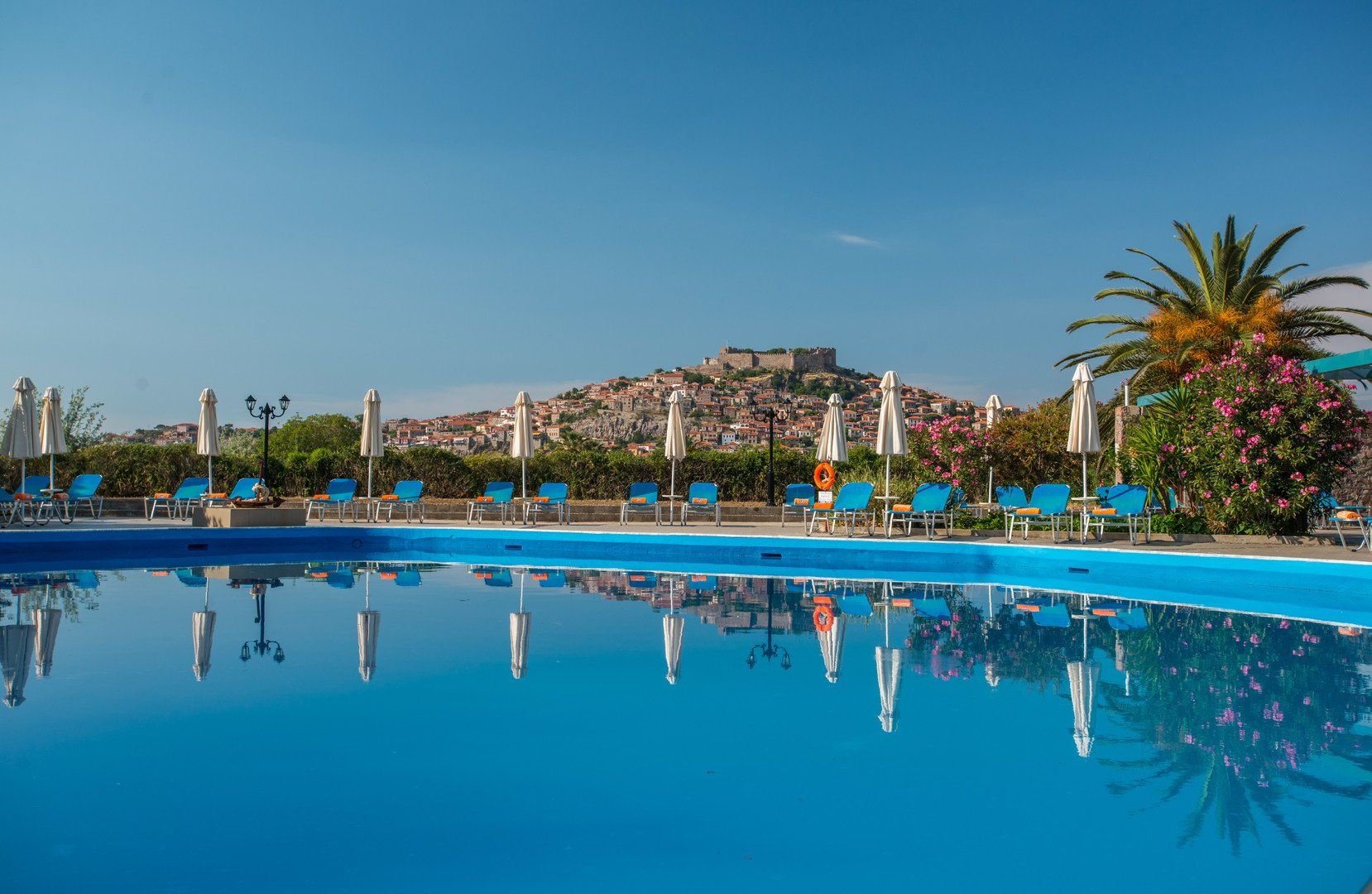 Udržovaný hotel - hlavní budova a bungalovy se nachází v rozlehlé zahradě a borovicovém háji na klidném místě cca 1,5 km od centra městečka Molyvos s hradem, restauracemi, bary a obchody. Letiště je vzdáleno cca 65 km. Z areálu hotelu je krásný výhled na moře, na hrad Molyvos a okolní krajinu. Vzhledem k členitém terénu nedoporučujeme osobám s omezenou možností pohybu.