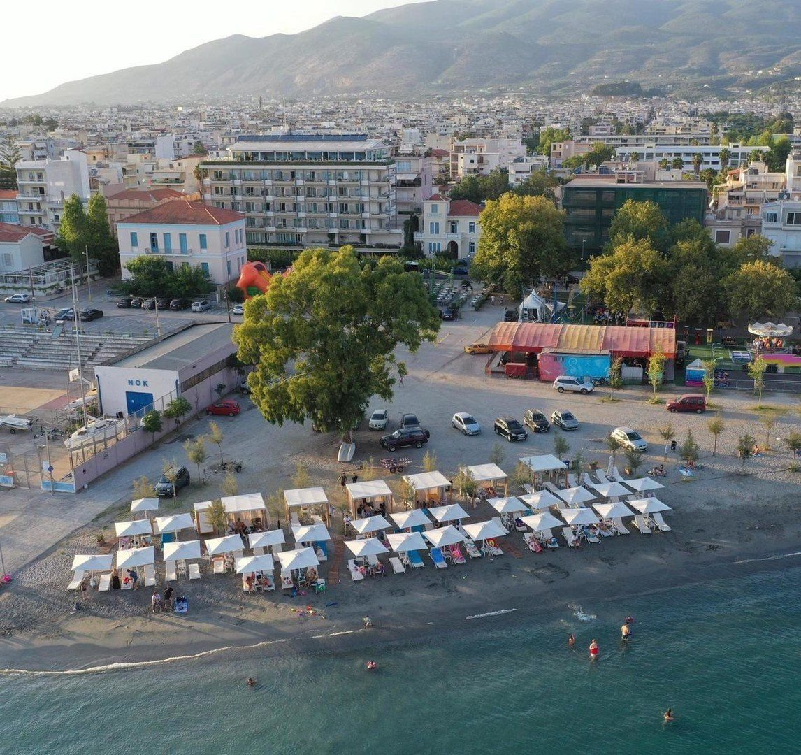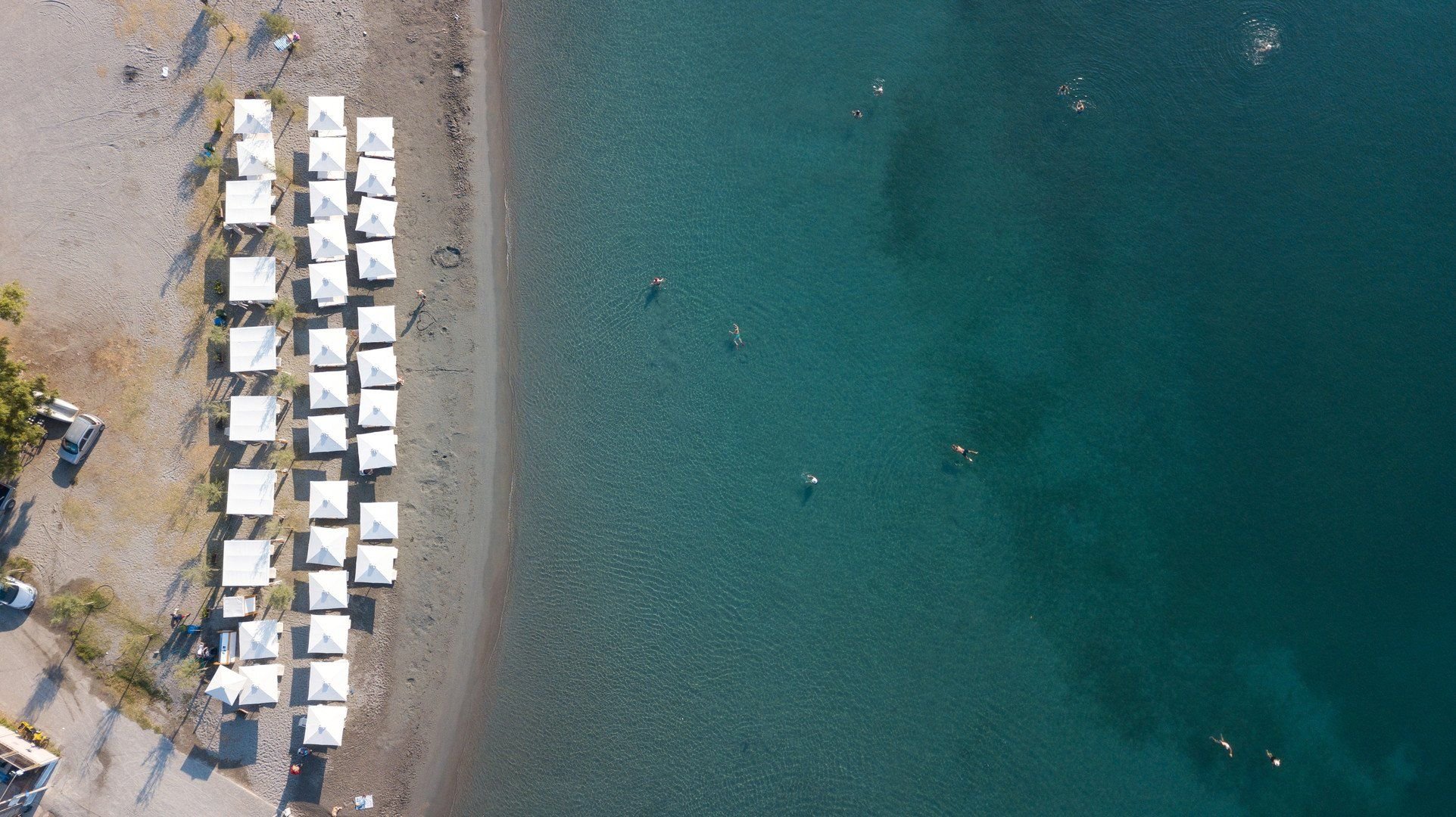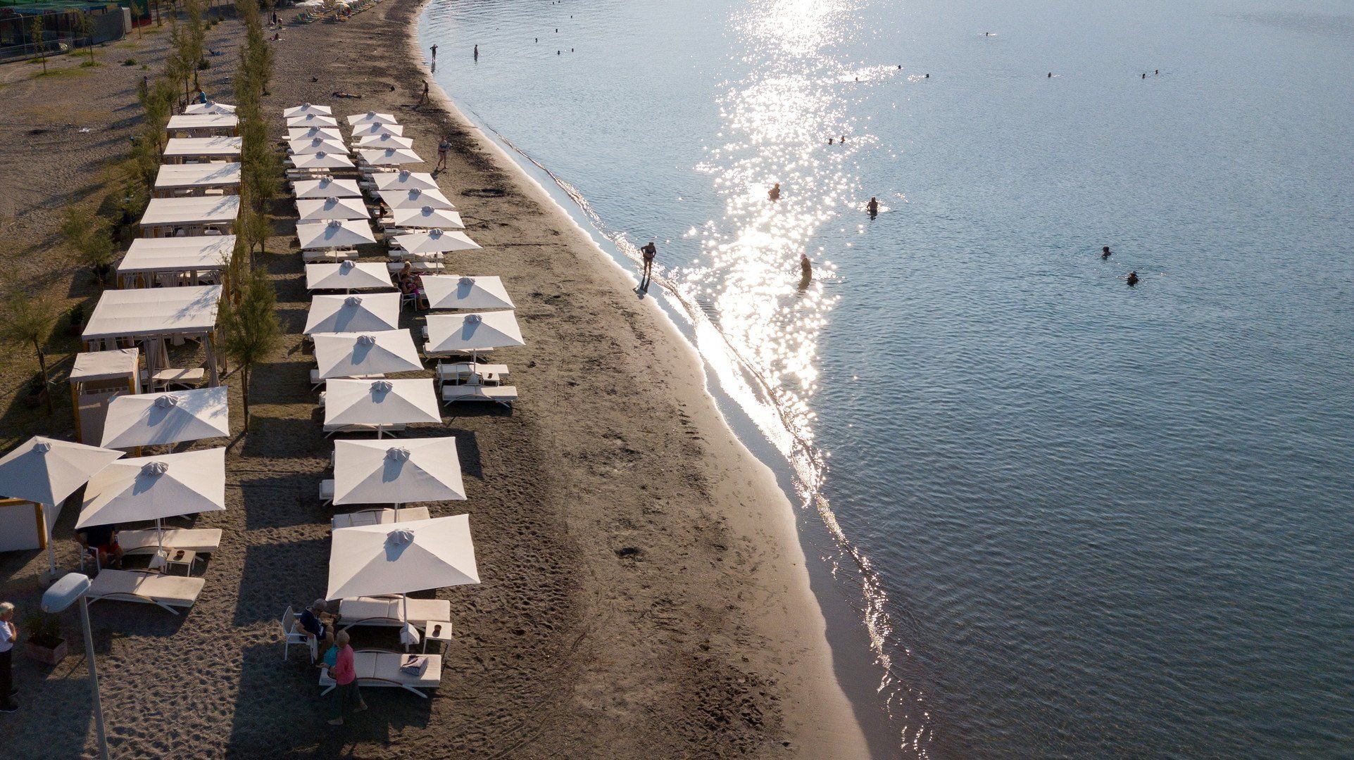 Soukromá písčito-oblázková pláž je v docházkové vzdálenosti od hotelu, oddělena pouze místní komunikací. Lehátka a slunečníky na pláži zdarma.