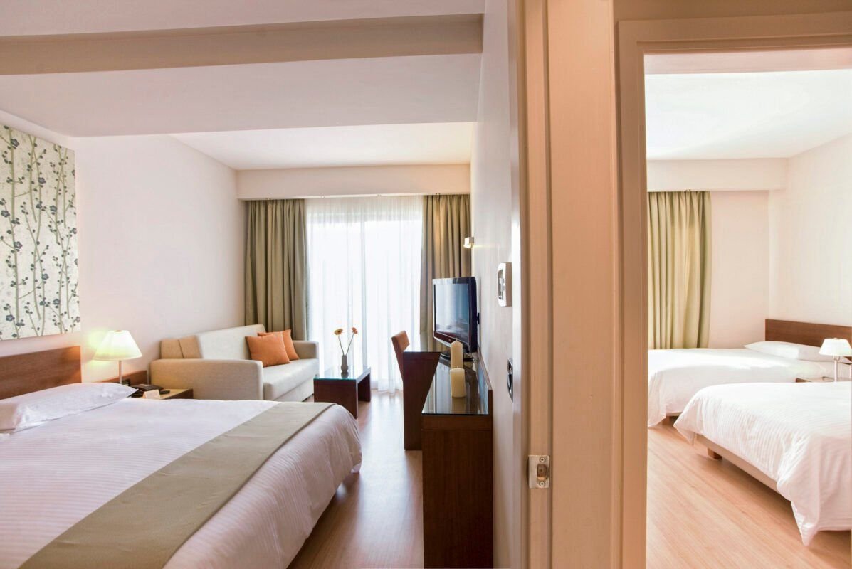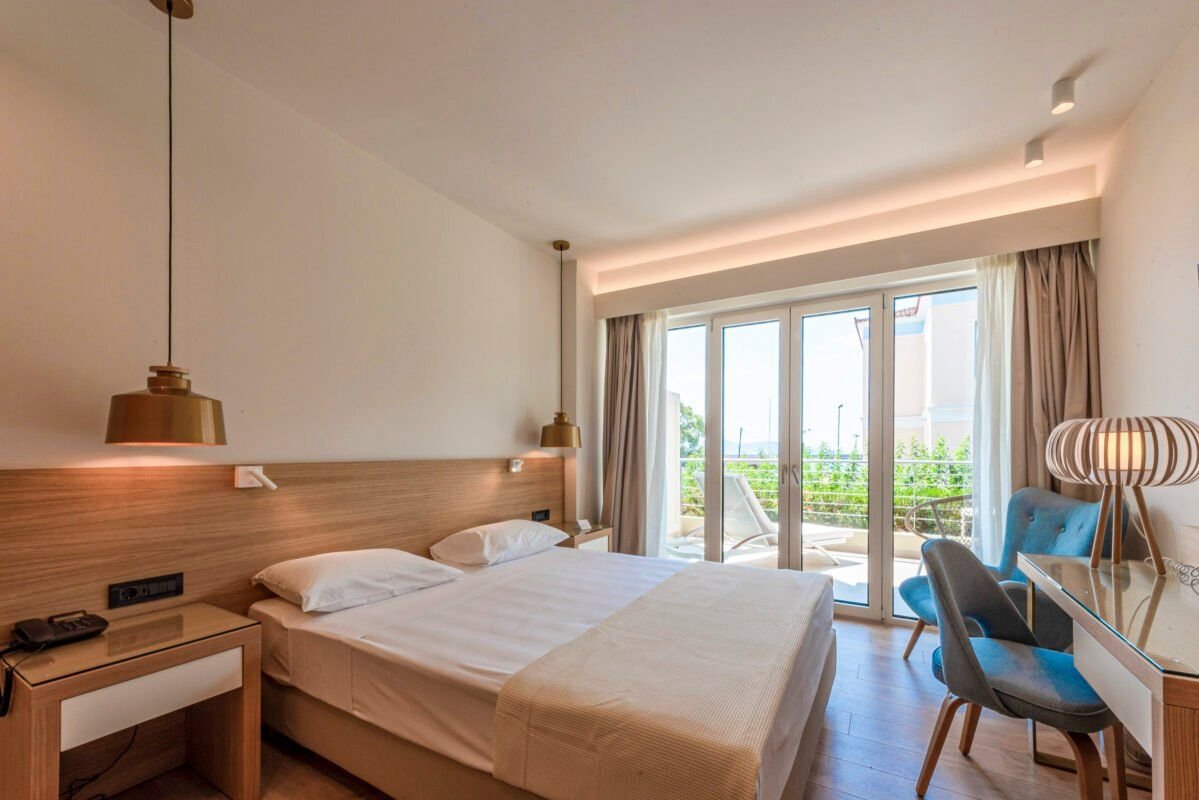 Standardní pokoje s výhledem na město s vlastním příslušenstvím (koupelna, WC, fén) jsou vybaveny manželskou postelí, SAT/TV, klimatizací, minibarem, bezpečnostní schránkou, Wi-Fi a setem na přípravu kávy/čaje. Za příplatek jsou k dispozici pokoje: Superior pokoje - prostornějšíStandardní pokoje s bočním výhledem na mořeRodinné pokoje - dvě oddělené ložnice Všechny pokoje mají terasu či balkon.