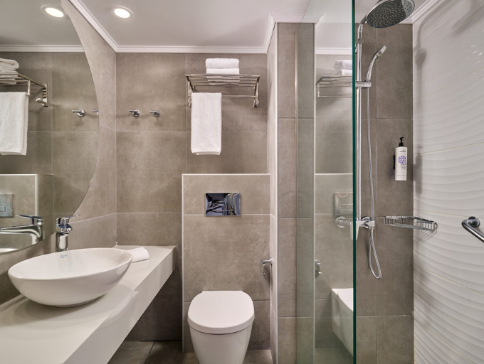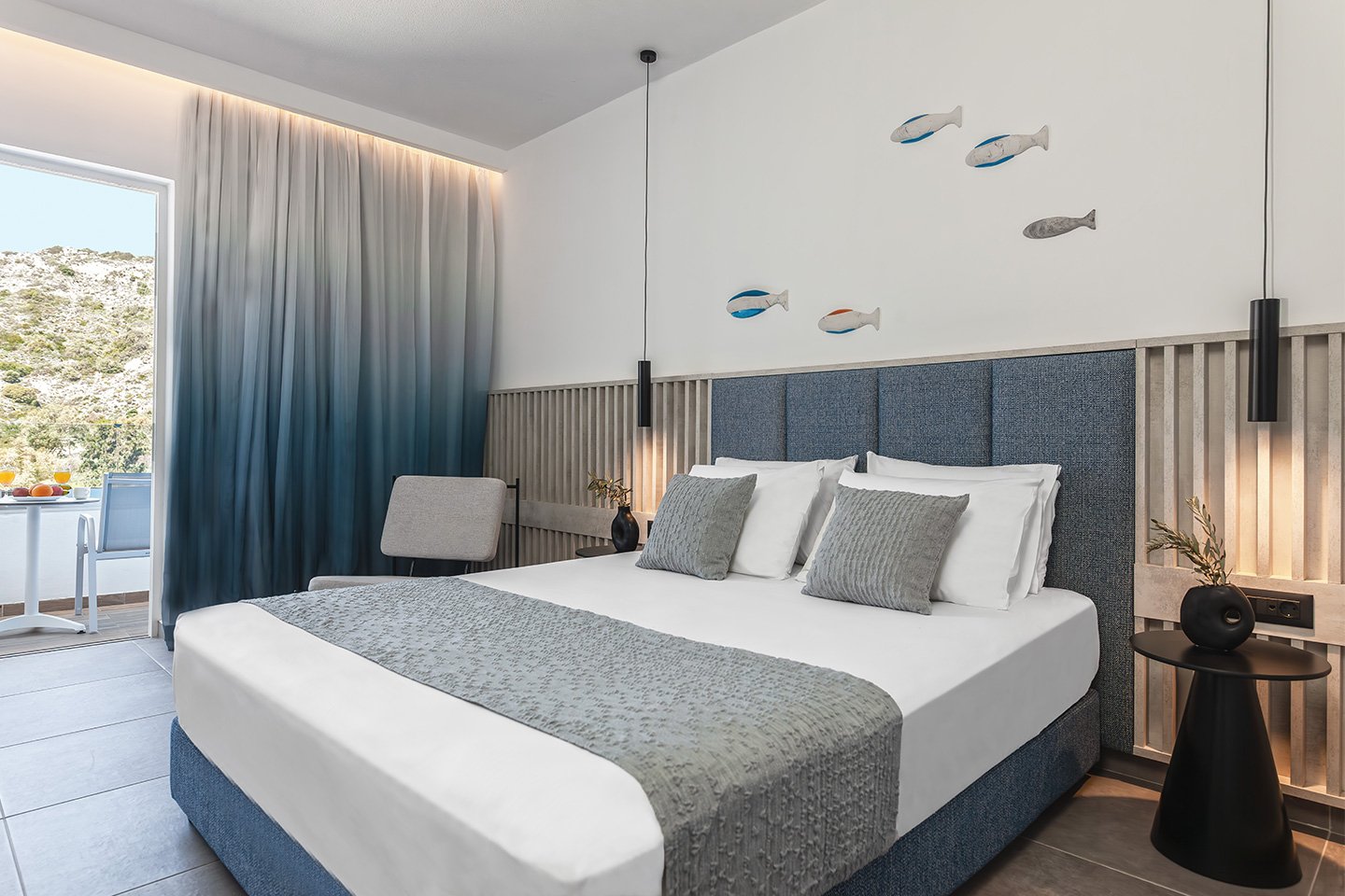 Standardní dvoulůžkové pokoje (budova annex přes místní hlavní komunikaci) mají vlastní příslušenství (WC, koupelna, fén), klimatizaci, TV, WiFi, chladničku, telefon, trezor, balkon. Na vyžádání je k dispozici rychlovarná konvice.Za příplatek jsou k dispozici dvoulůžkové pokoje s možností až 2 přistýlek (budova annex), dvoulůžkové pokoje Superior s výhledem na moře (hlavní budova), pokoje Superior s možností až 2 přistýlek (výhled do okolí, hlavní budova), dvoulůžkové pokoje Superior s výhledem do okolí (hlavní budova).