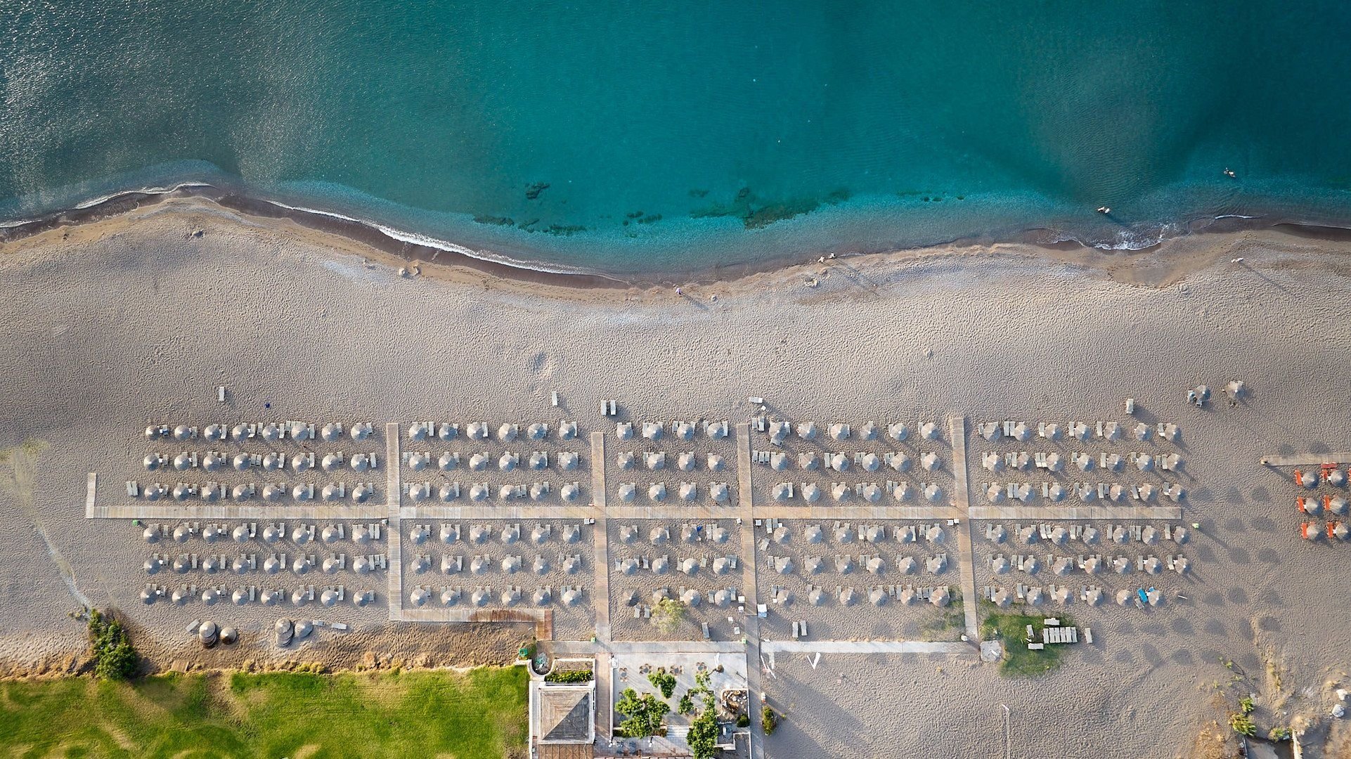 Veřejná písčito-oblázková pláž s pozvolným vstupem do moře se nachází cca 50 m od recepce; pokoje ve vedlejší části cca 150 m, v závislosti na ubytování přímo u hotelu. Přístup k ní je přes areál hotelu nebo přes silnici. Lehátka a slunečníky jsou k dispozici zdarma. Pláž je oceněna certifikátem Modrá vlajka.