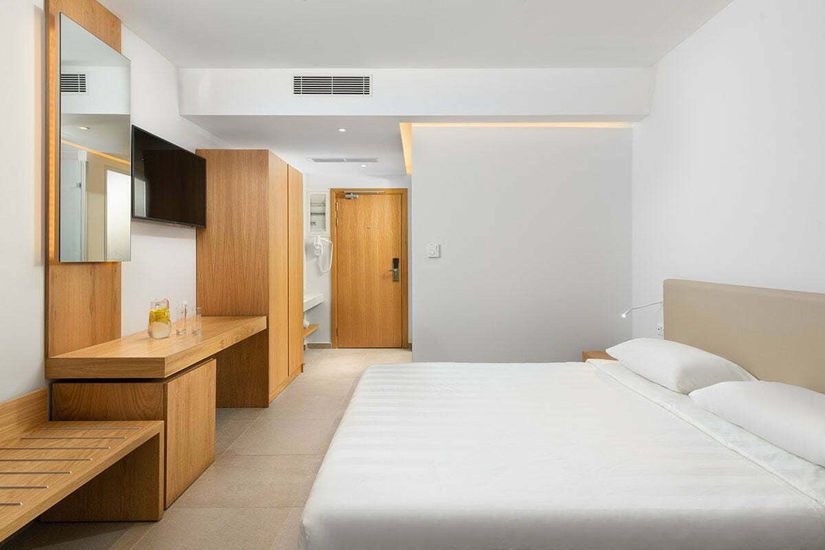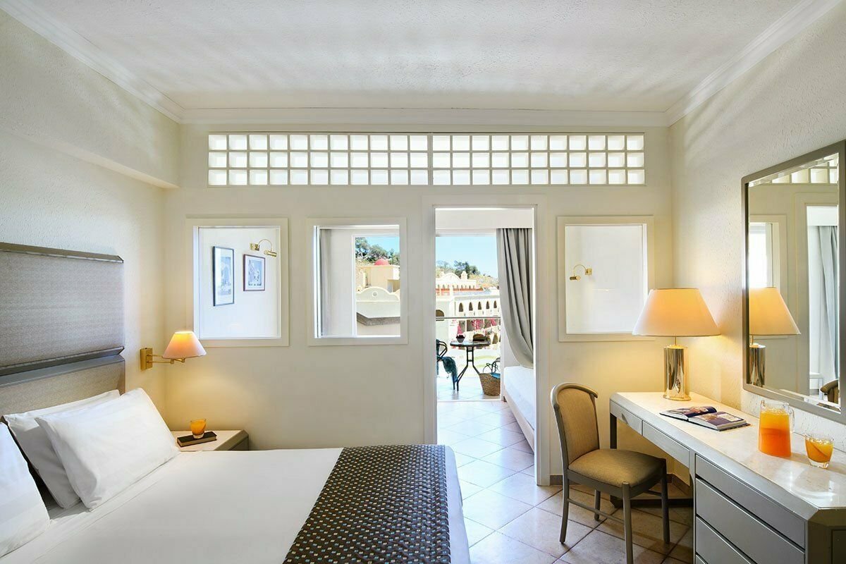 Dvoulůžkové pokoje Promo (cca 22 m²) mají vlastní příslušenství (WC, koupelna, fén), klimatizaci (1/6-30/9), SAT/TV, mini ledničku; balkon nebo terasa.Za poplatek: trezorZa příplatek jsou k dispozici:- dvoulůžkové pokoje Deluxe s výhledem do vnitrozemí (cca 22 m²)- dvoulůžkové pokoje Swim Up s výhledem do zahrady (sdílený bazén, cca 22 m²)- rodinné pokoje s bočním výhledem na moře (cca 32 m²)- rodinné pokoje s výhledem do zahrady (cca 32 m²)- rodinné pokoje s výhledem na moře (cca 32 m²)- Junior Suite s výhledem na moře (cca 34 m²)- dvoulůžkové pokoje Deluxe s výhledem na moře (cca 22 m²)