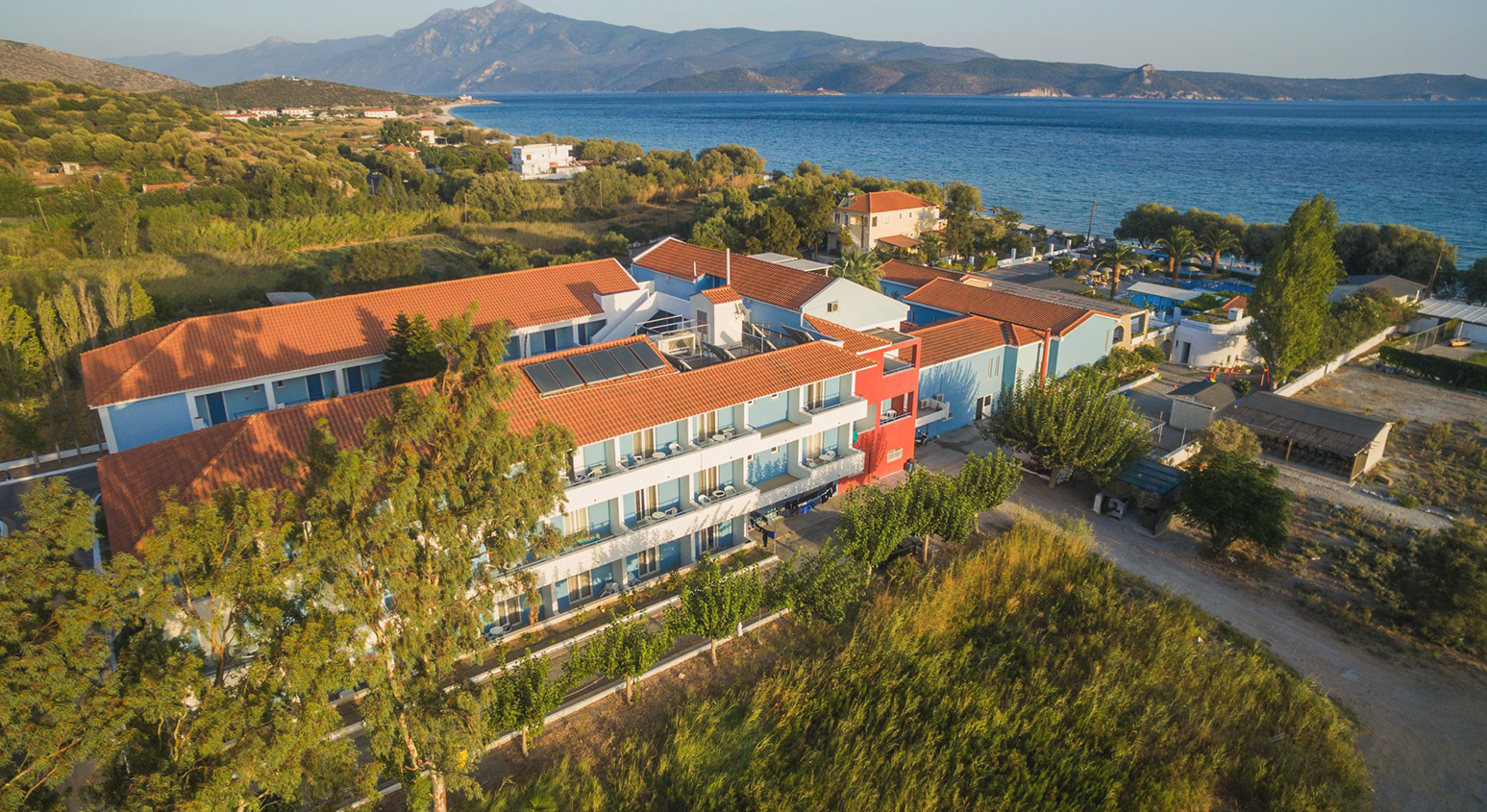 Příjemný hotel Zefiros Beach Hotel se nachází v klidné oblasti Mykali přímo u dlouhé oblázkové pláže s pozvolným vstupem do moře. Potěší svou klidnou a uvolněnou, přátelskou atmosférou. Je ideální pro všechny, kdo si chtějí užít ničím nerušený odpočinek v blízkosti moře a daleko od rušných letovisek. K dispozici je bazén, restaurace s místní kuchyní i sportovní vyžití, zatímco okolní příroda a krásné výhledy podtrhují relaxační charakter pobytu.