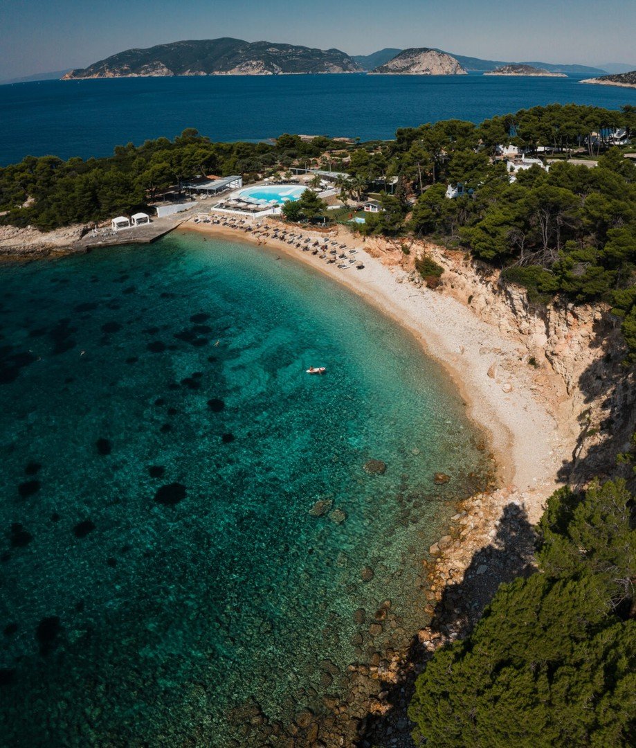 Na jihozápadním pobřeží ostrova ALONNISOS, cca 2 km od centra města Patitiri s obchody a bary; cca 54 km od letiště na Skiathosu; transfer trajektem, cca 2 km od trajektového přístavu na Alonissosu; v závislosti na čase příletu/odletu může být první a/nebo poslední noc rezervována v hotelu na ostrově Skiathos.
