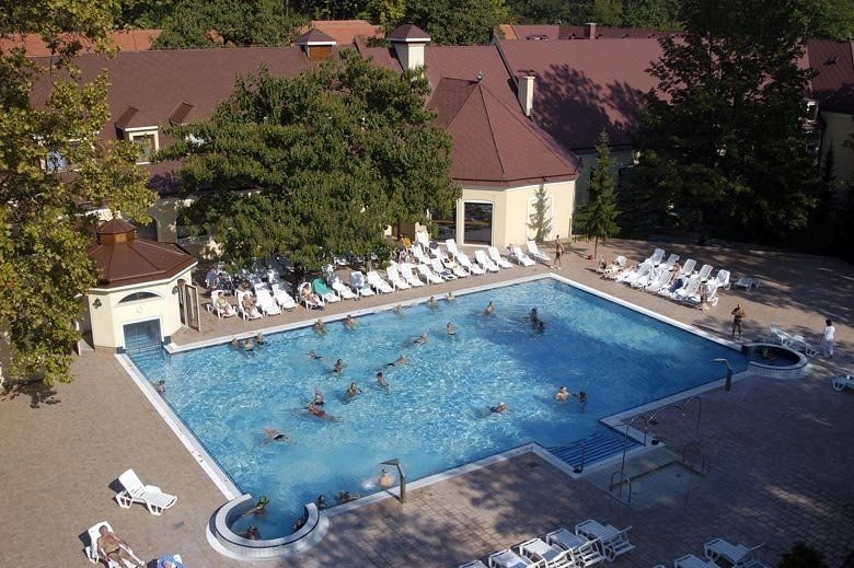 Bazén, balneo centrum, aquapark (Čajka), masáže, baňkování, fitness, sauna.Vlastní balneologické centrum, Vodní svět - tj. soustava termálních bazénů (tří vnitřních - tzv. Žlutý 38 °C a tzv. Zelený 32 °C, tzv. Bílý bazén s mořskou vodou 35-360C) a venkovní termální bazén 34 °C s celoročním provozem.Do komplexu hotelu dále patří moderní Relax centrum (wellness a saunový svět – solná a bylinková koupel, sanárium, Whirlpool, finská sauna, sluneční louka, oddychová místnost, fitness).