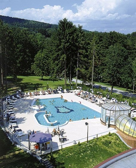 Bazén, balneo centrum, aquapark (Čajka), masáže, baňkování, fitness, sauna.Vlastní balneologické centrum, Vodní svět - tj. soustava termálních bazénů (tří vnitřních - tzv. Žlutý 38 °C a tzv. Zelený 32 °C, tzv. Bílý bazén s mořskou vodou 35-360C) a venkovní termální bazén 34 °C s celoročním provozem.Do komplexu hotelu dále patří moderní Relax centrum (wellness a saunový svět – solná a bylinková koupel, sanárium, Whirlpool, finská sauna, sluneční louka, oddychová místnost, fitness).